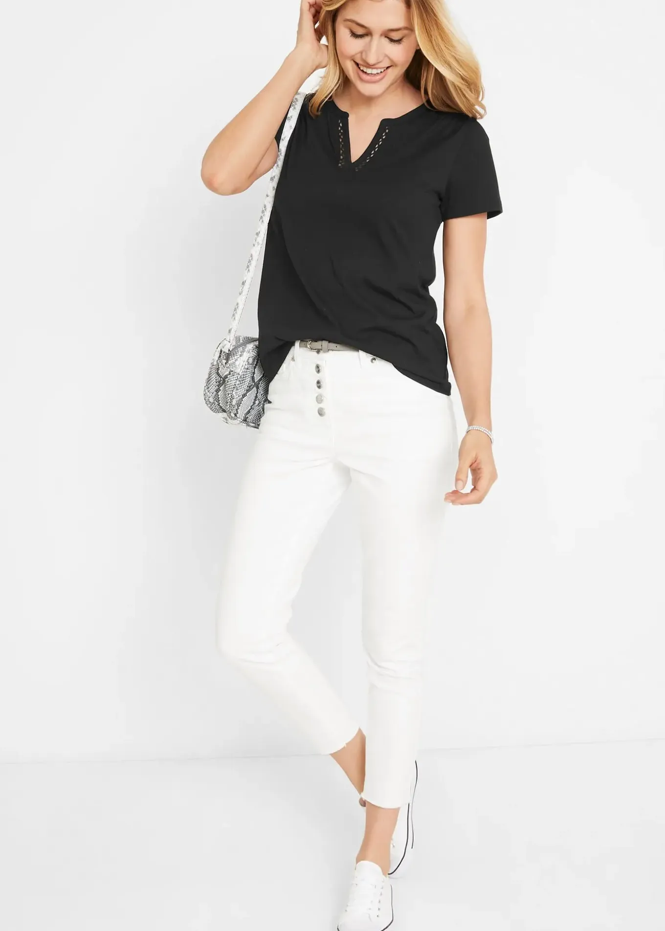T-shirt en coton à encolure ronde fendue en V avec des découpes