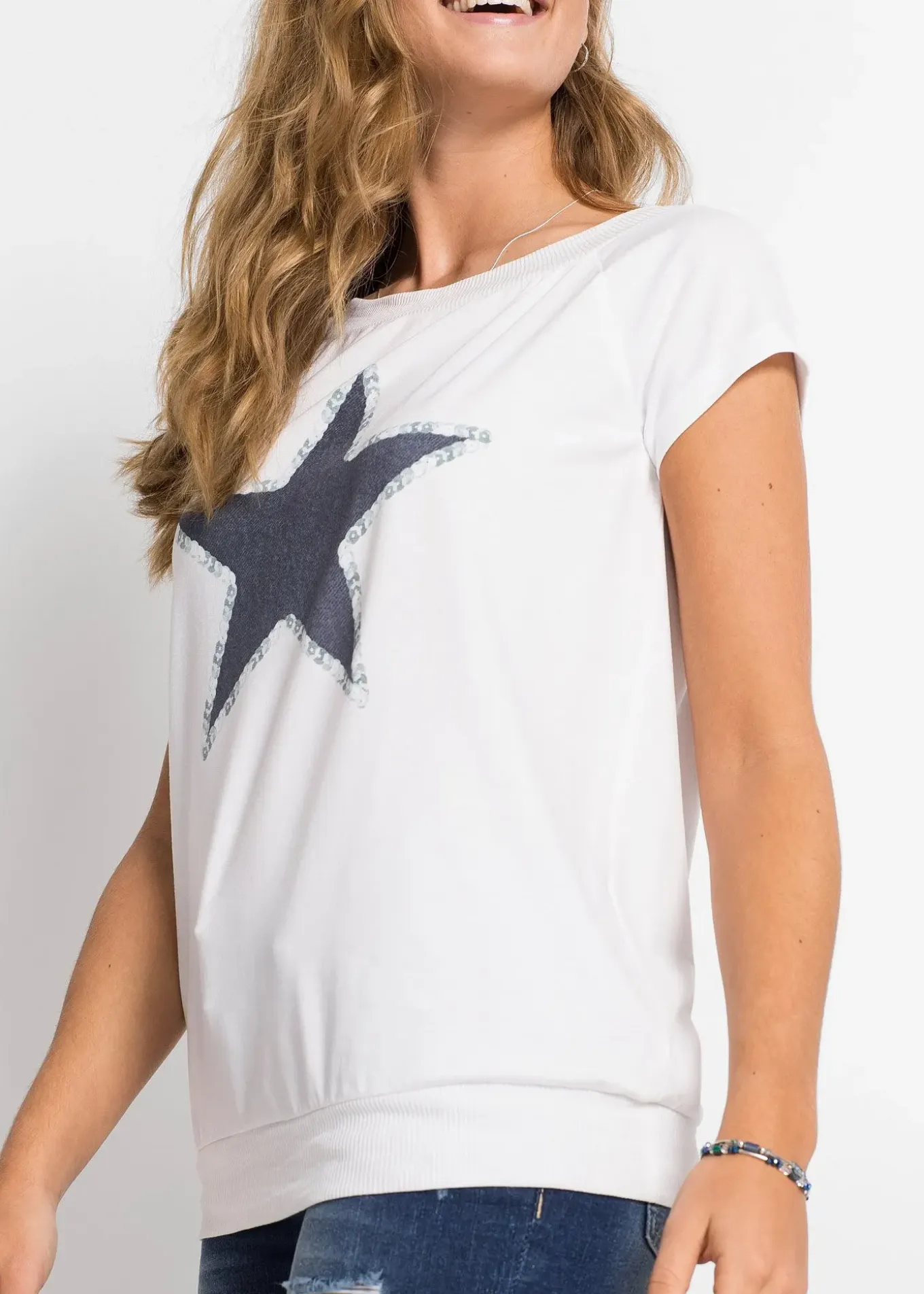 T-shirt décontracté avec application étoile et manches raglan