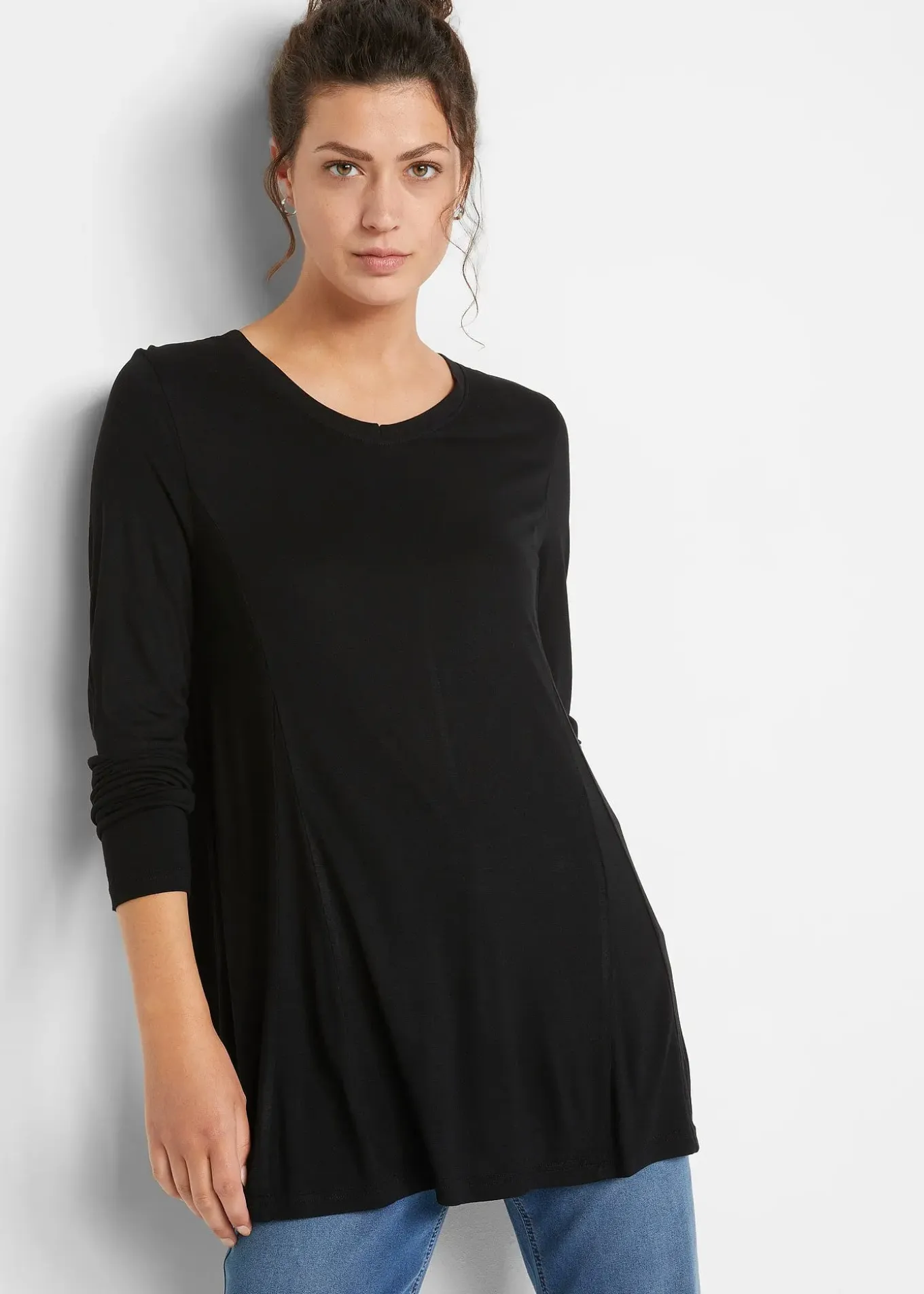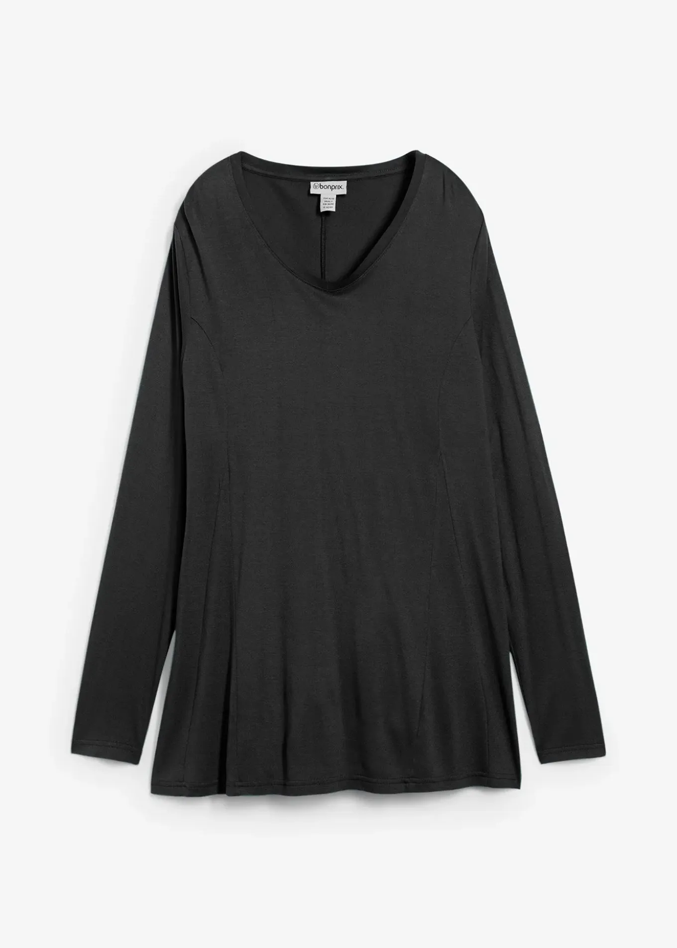 T-shirt à manches longues flatteur avec col haut en V, en viscose