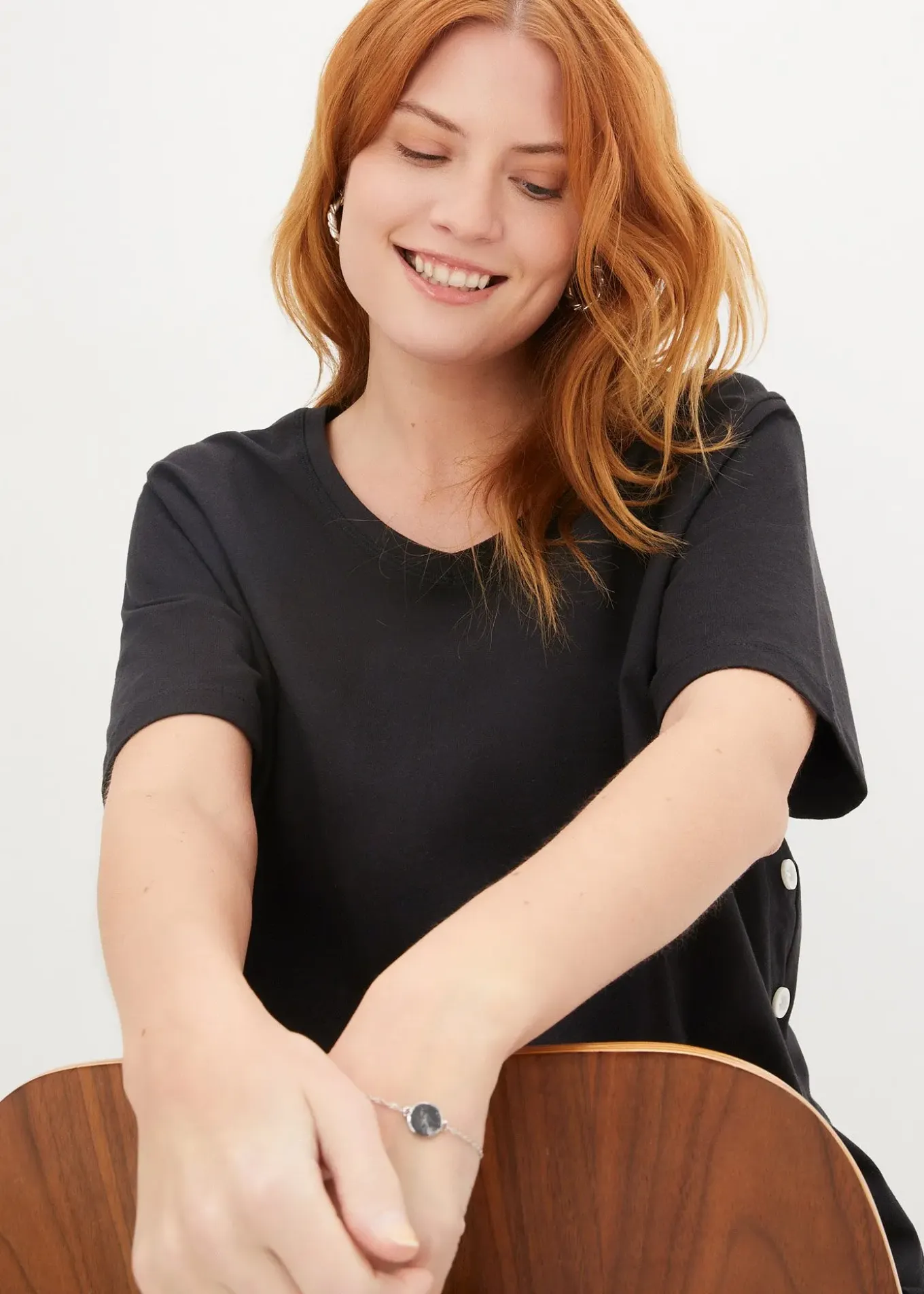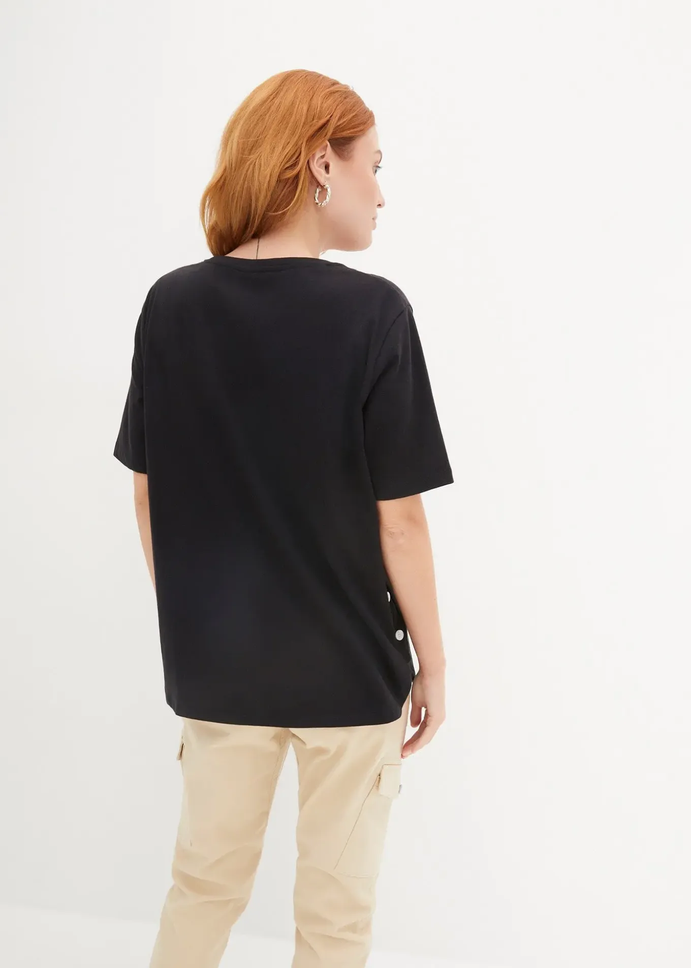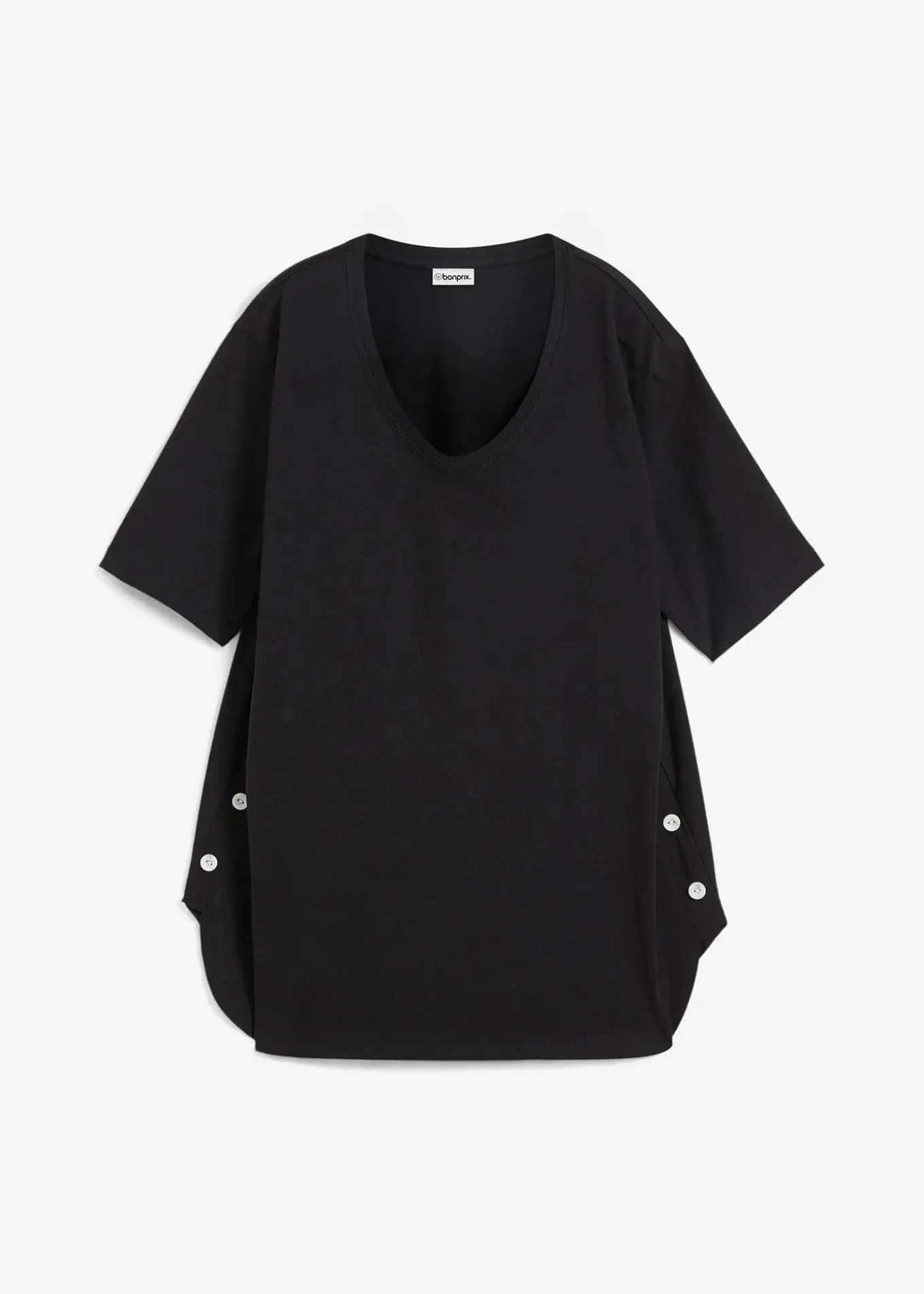 T-shirt col V en coton, boutonné sur le côté