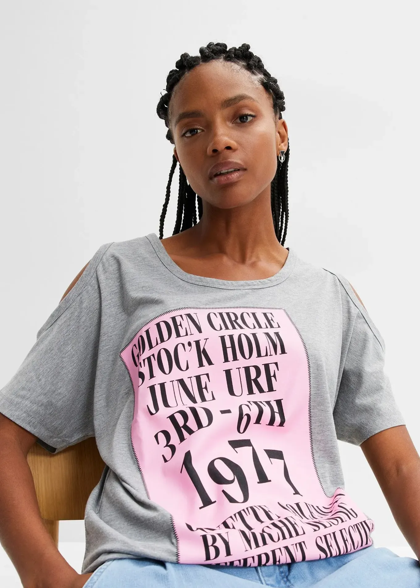 T-shirt cool qui doit son originalité à une découpe au niveau de l’épaule, une coupe décontractée et un joli imprimé – à mixer avec un jean court ou long. Long. env. 64 cm.