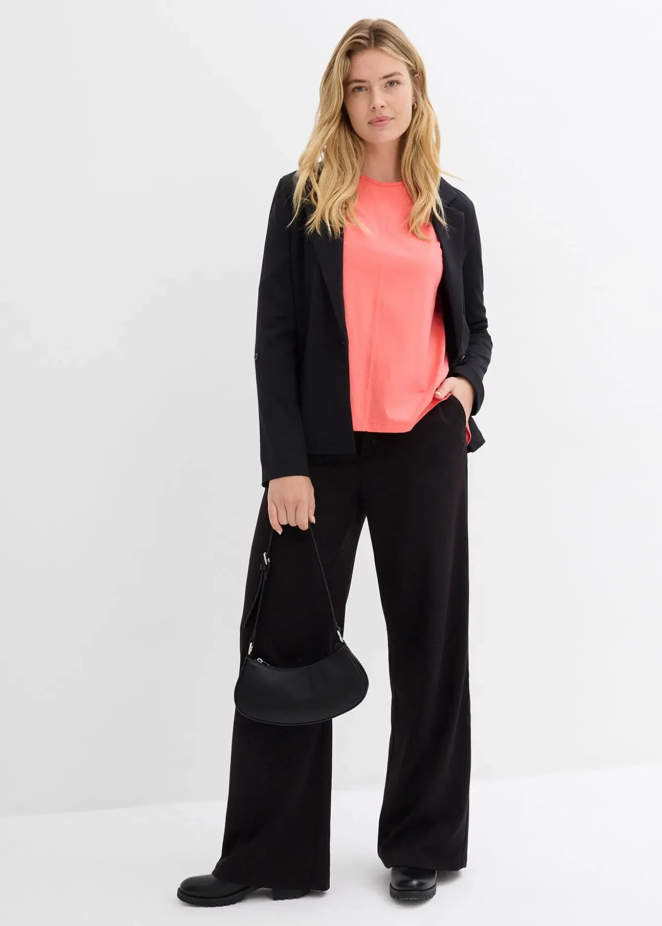 T-shirt boxy à base asymétrique, manches ¾