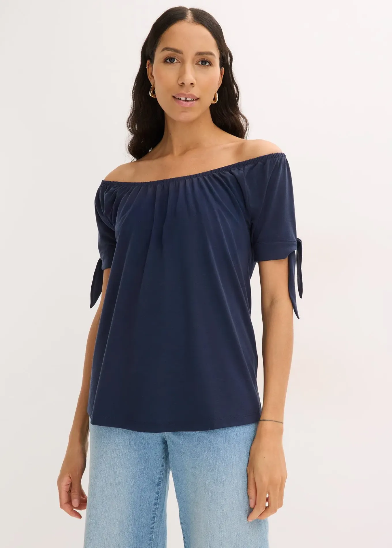 T-shirt flatteur à nouer, large encolure et fentes aux manches