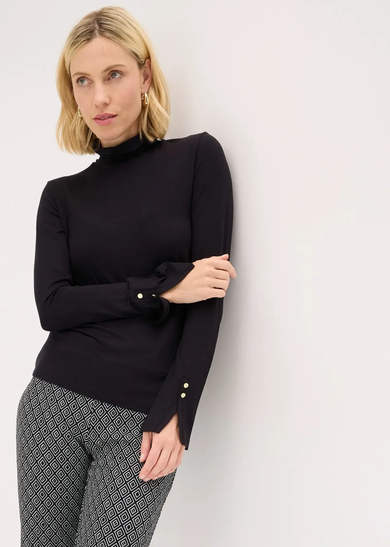 T-shirt col roulé intemporel avec boutons décoratifs
