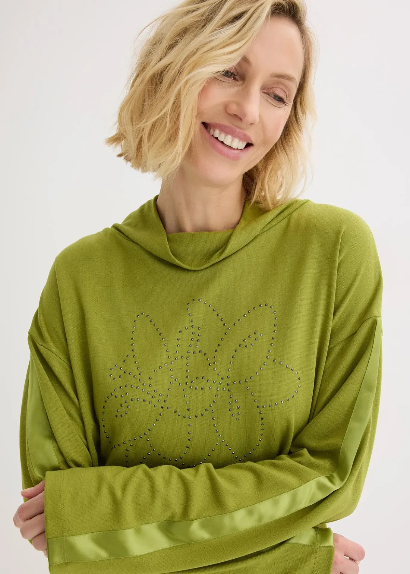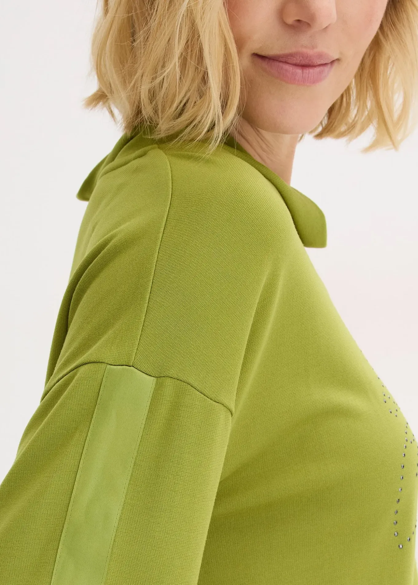 T-shirt élégant à col montant et bande satinée sur les manches