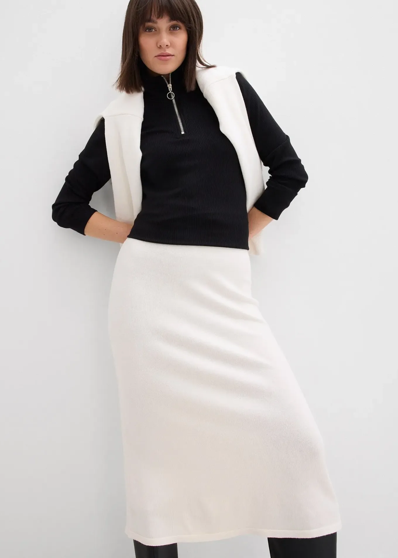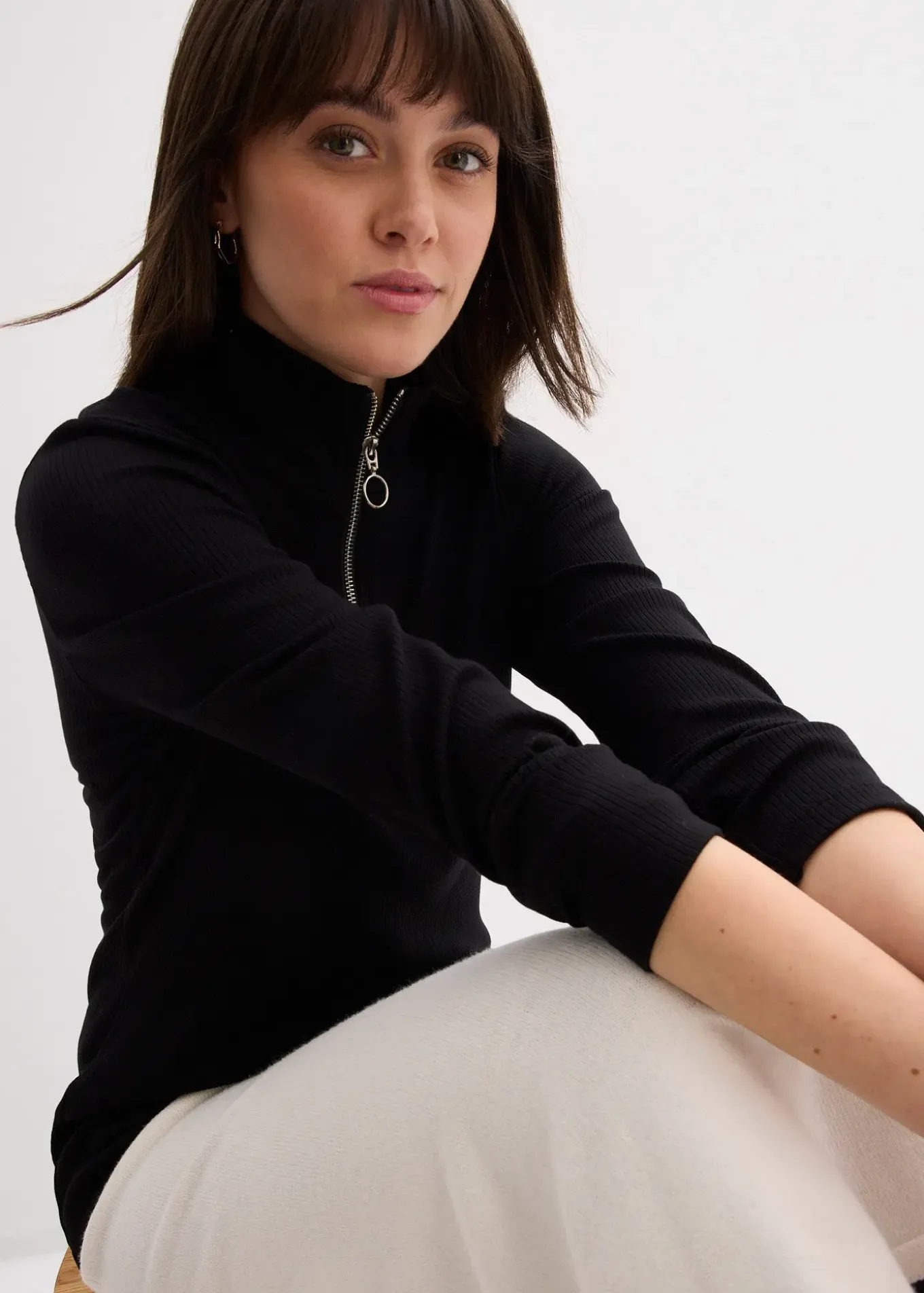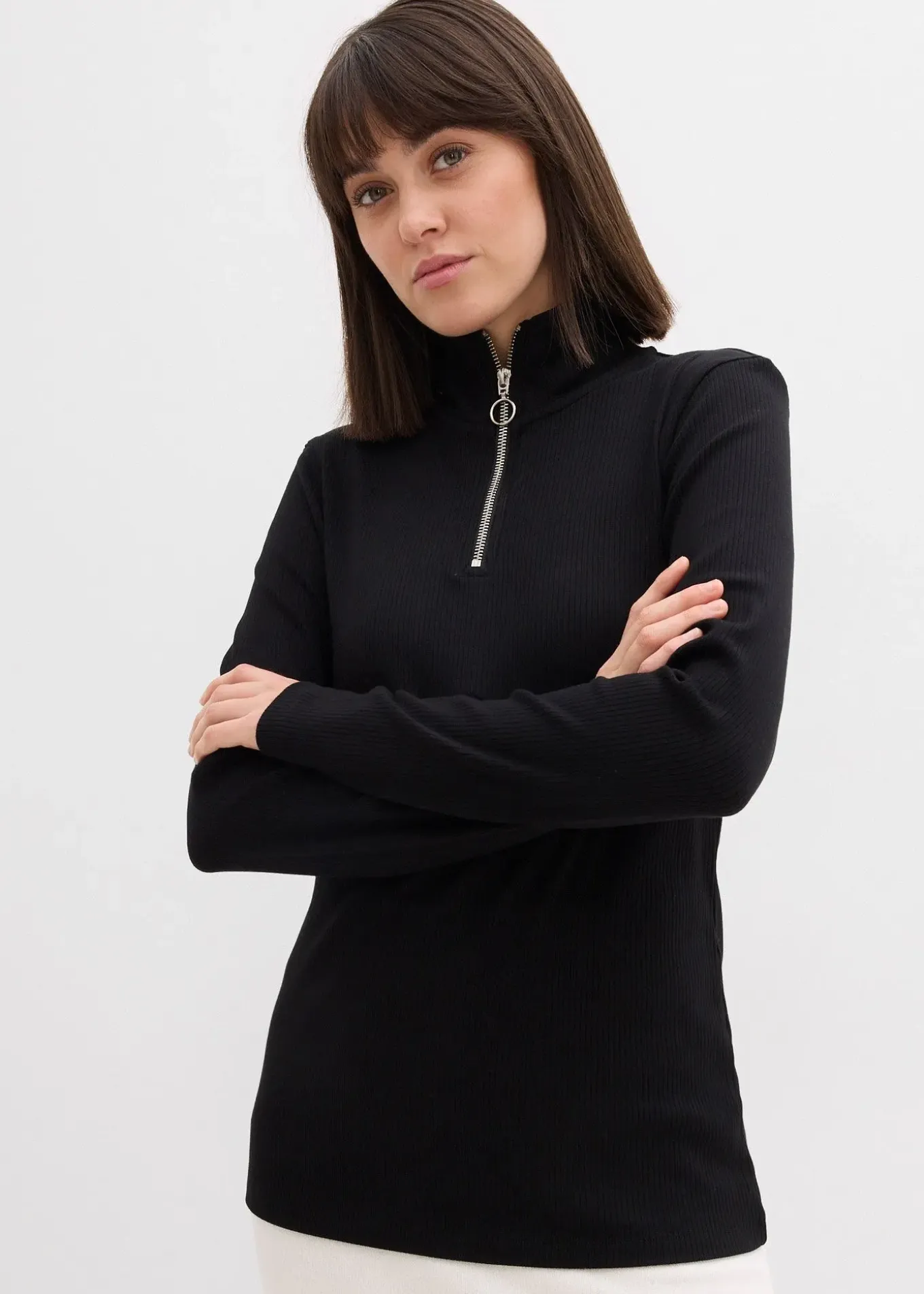 T-shirt côtelé, doux et près du corps à col zippé