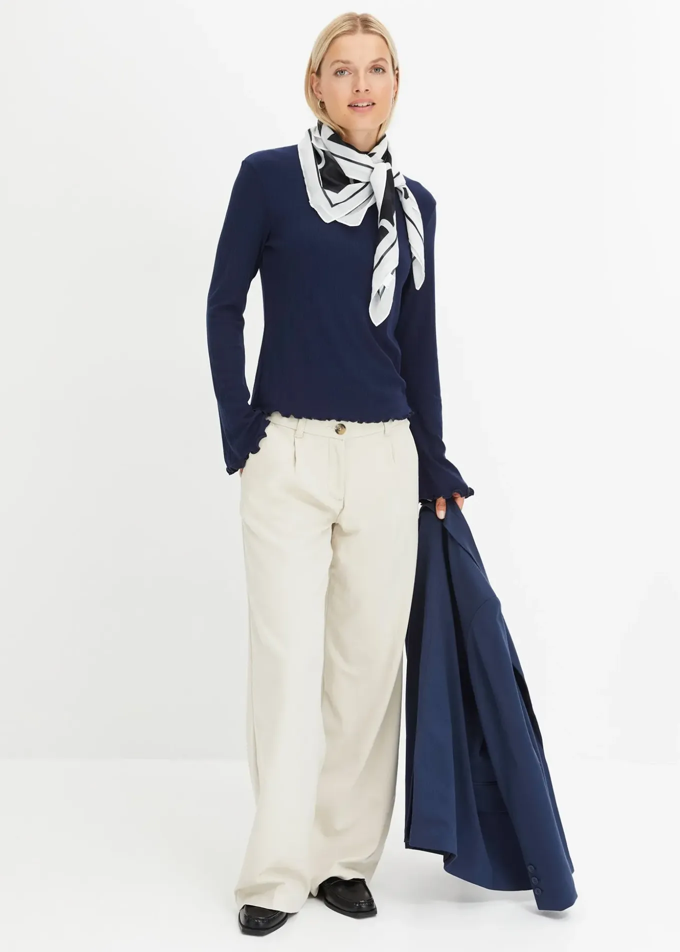 T-shirt à manches longues trompette et finitions ondulées, Slim Fit