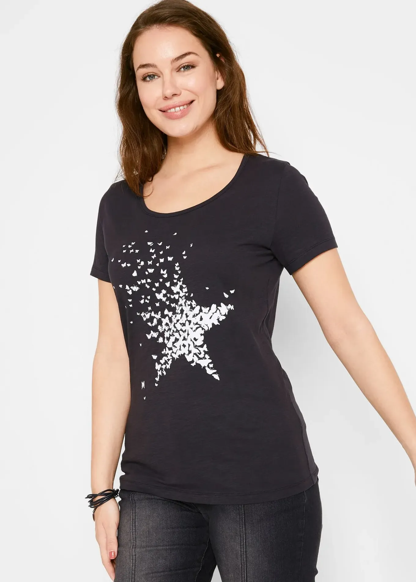 T-shirt en fil flammé, manches courtes et col rond, imprimé décoratif