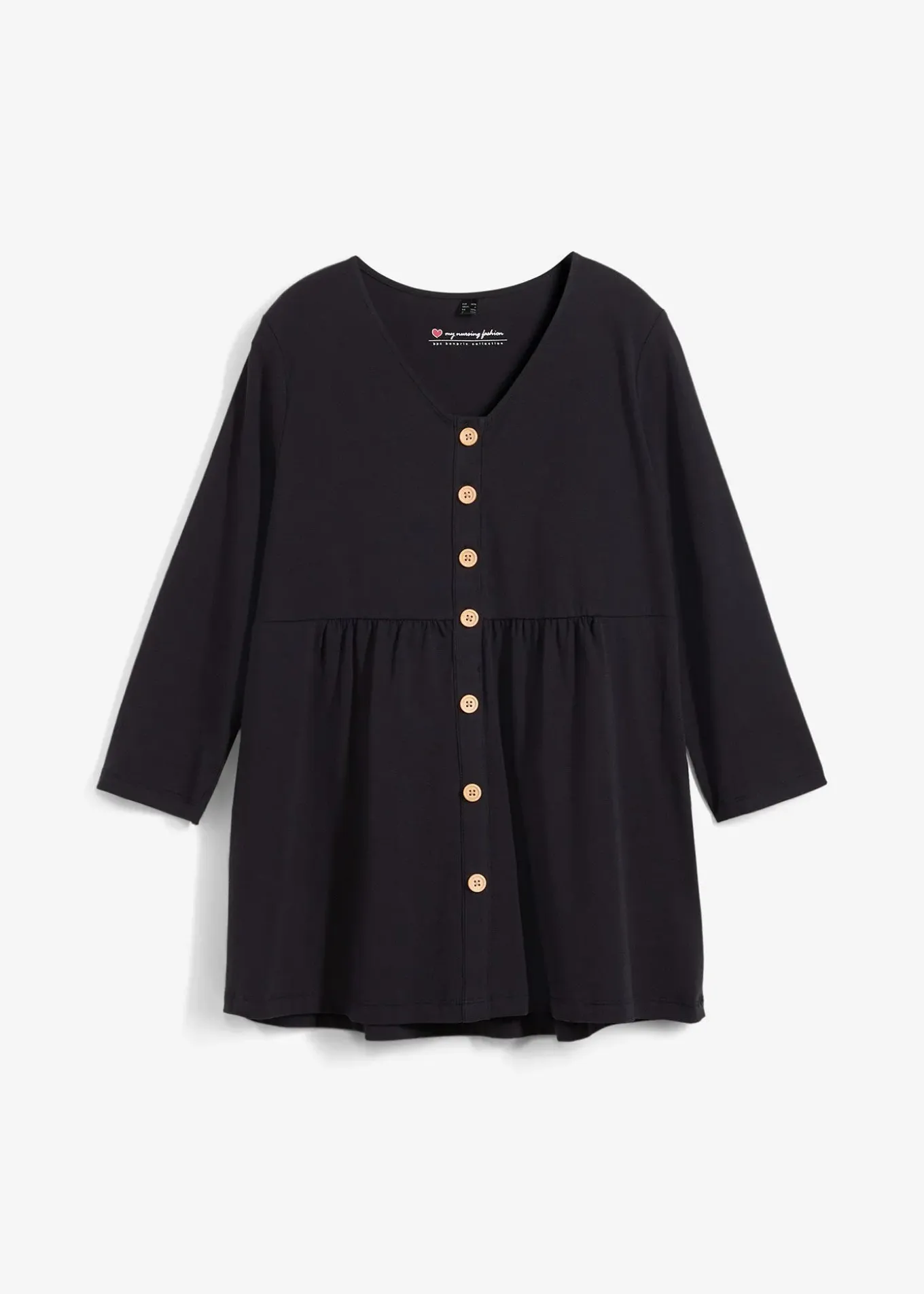 Ce T-shirt est adapté pour chaque mois de grossesse et, grâce à ses boutons, il s’ouvre aisément pour faciliter l’allaitement après la naissance. T-shirt de grossesse avec fonction allaitement style babydoll avec manches 3/4. Matière coton agréablement douce et extensible.