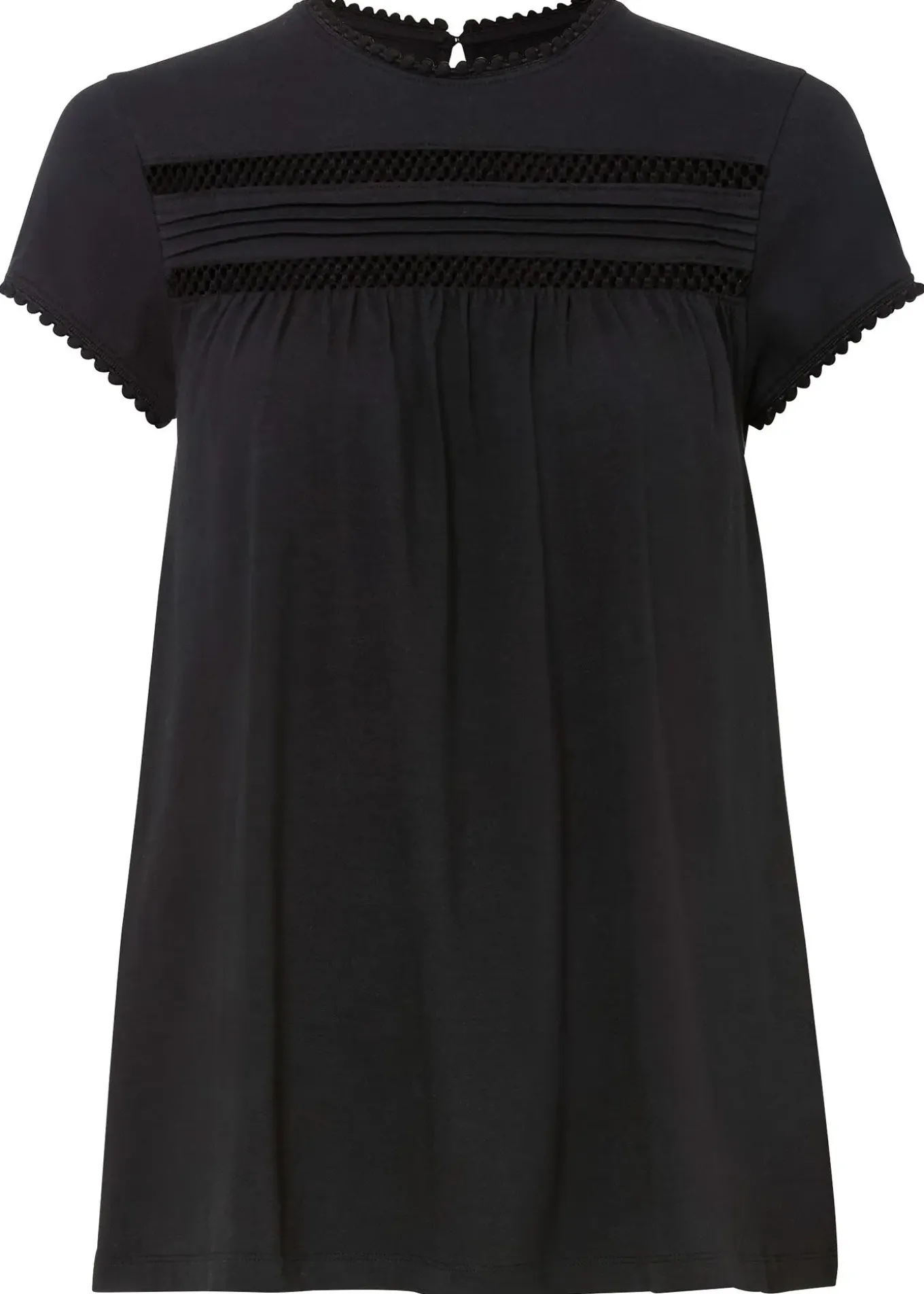 T-shirt en coton moderne avec empiècement en dentelle et manches courtes