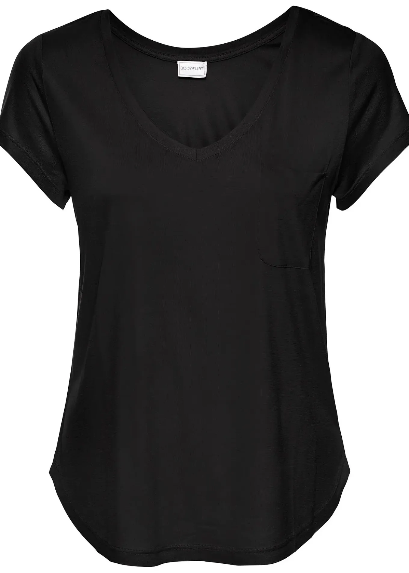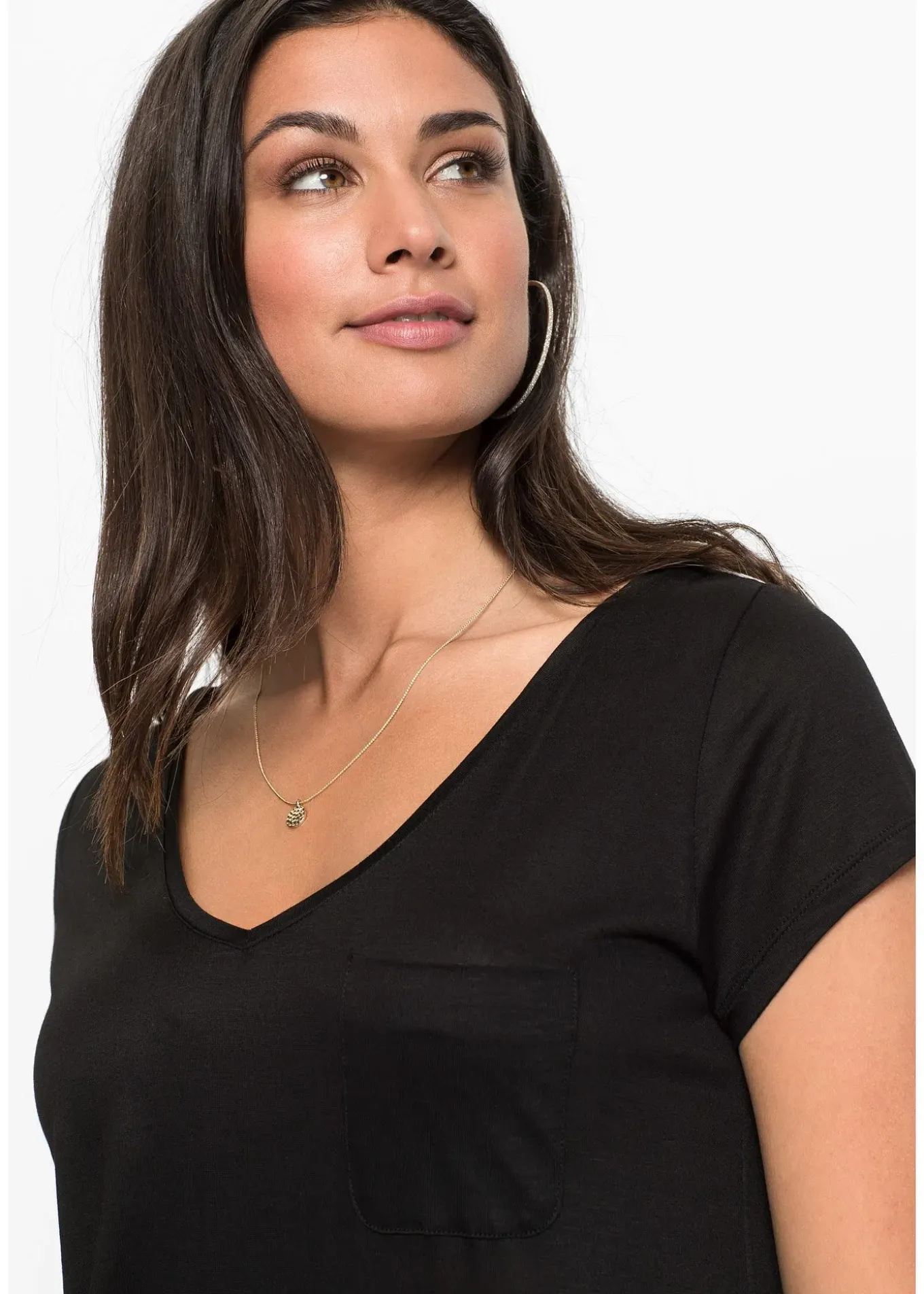 La coupe ample flatteuse et la base arrondie donnent à ce T-shirt de BODYFLIRT une belle allure. La poche plaquée sur la poitrine ajoute une touche décorative. Le tissu doux et légèrement brillant lui donne un look raffiné. L’encolure en V met parfaitement en valeur le décolleté. Ce modèle à manches courtes s’associe facilement pour créer des tenues féminines et stylées.
