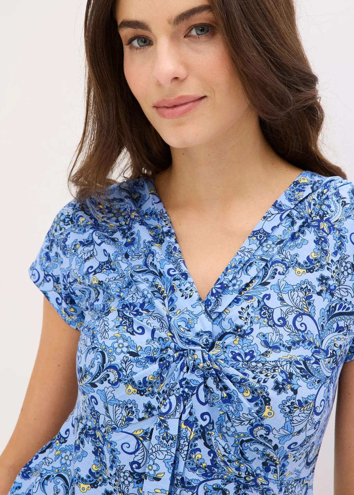 Ce ravissant T-shirt de la marque BODYFLIRT attirera tous les regards sur vous. Son encolure plongeante en V avec effet torsadé et fronces met en valeur le décolleté. Il se distingue aussi par un tombé fluide sous poitrine. À combiner avec un pantalon étroit ou un legging pour une tenue féminine.