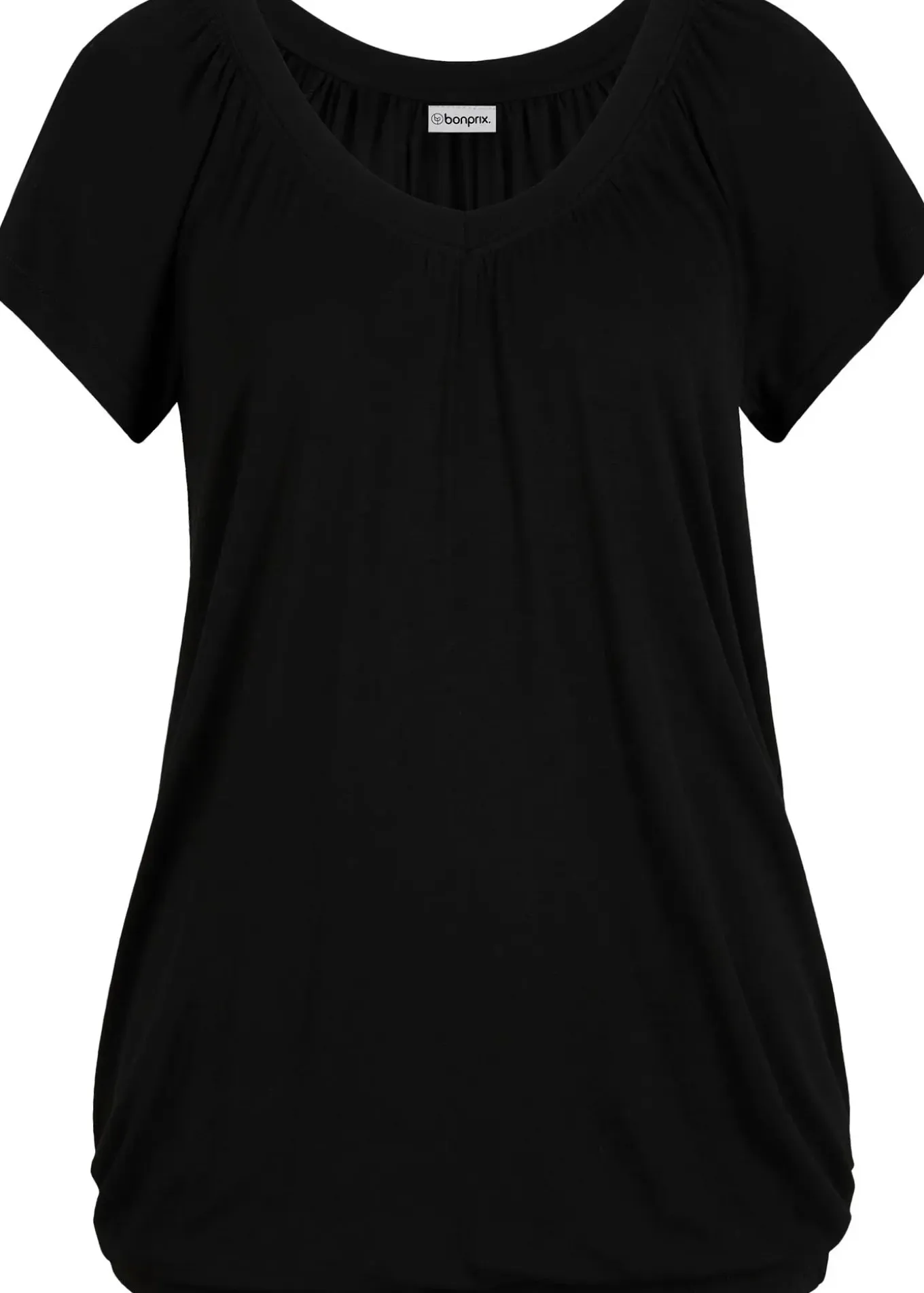 T-shirt avec col en V froncé, base élastiquée et petites manches papillon