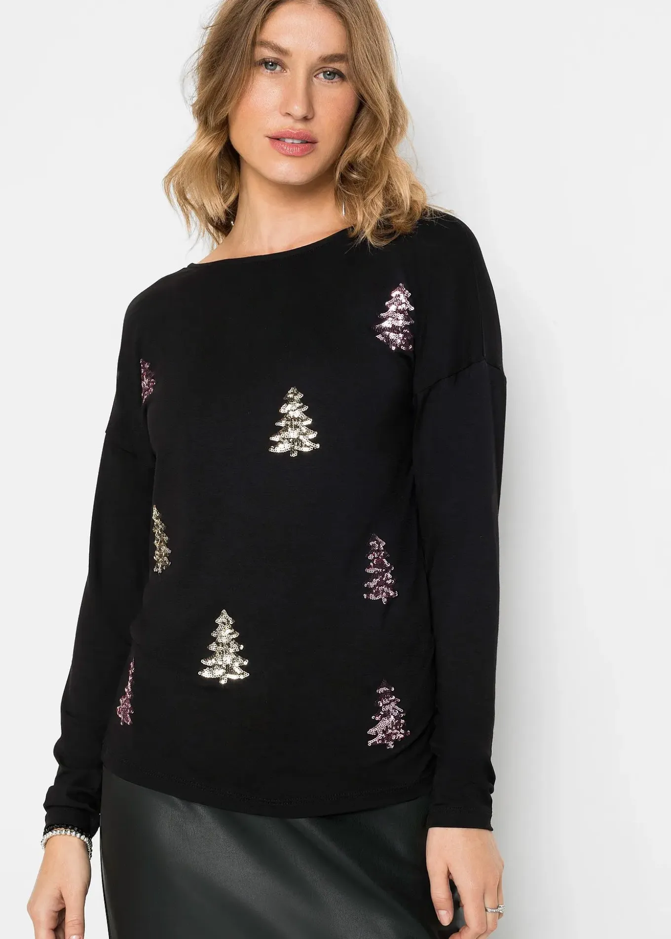 Ce T-shirt de coupe raffinée attire les regards sur vous. Avec paillettes scintillantes sur le devant. Long. env. 68 cm.
