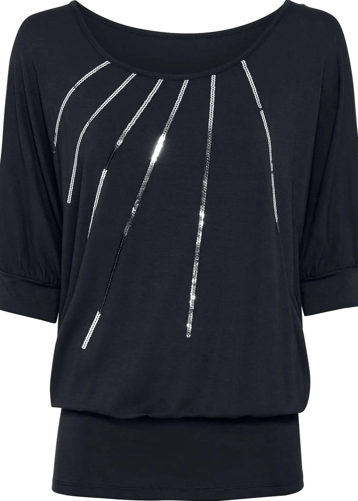 T-shirt raffiné avec sequins décoratifs, coupe originale