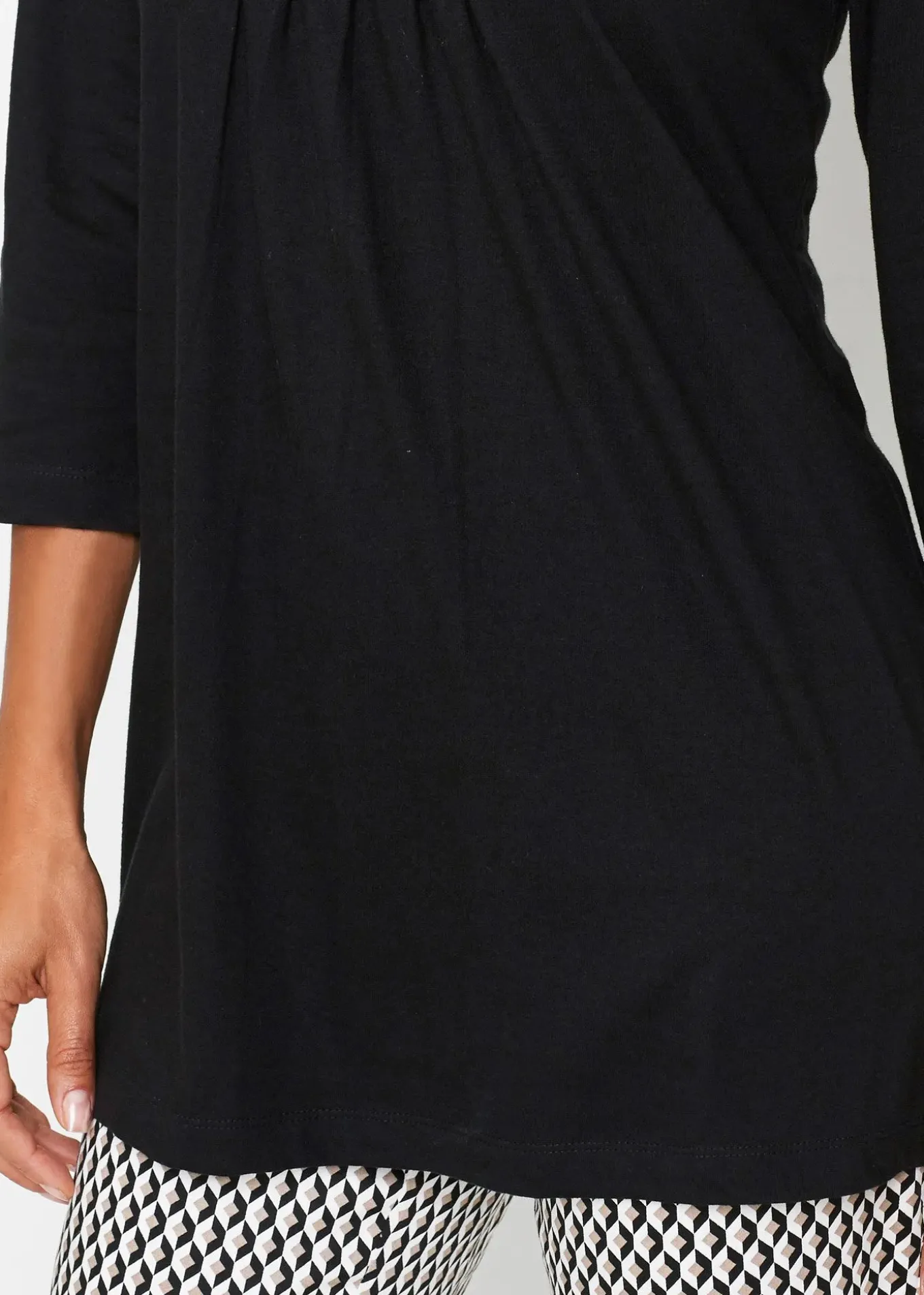 T-shirt long confortable à manches 3/4, en coton