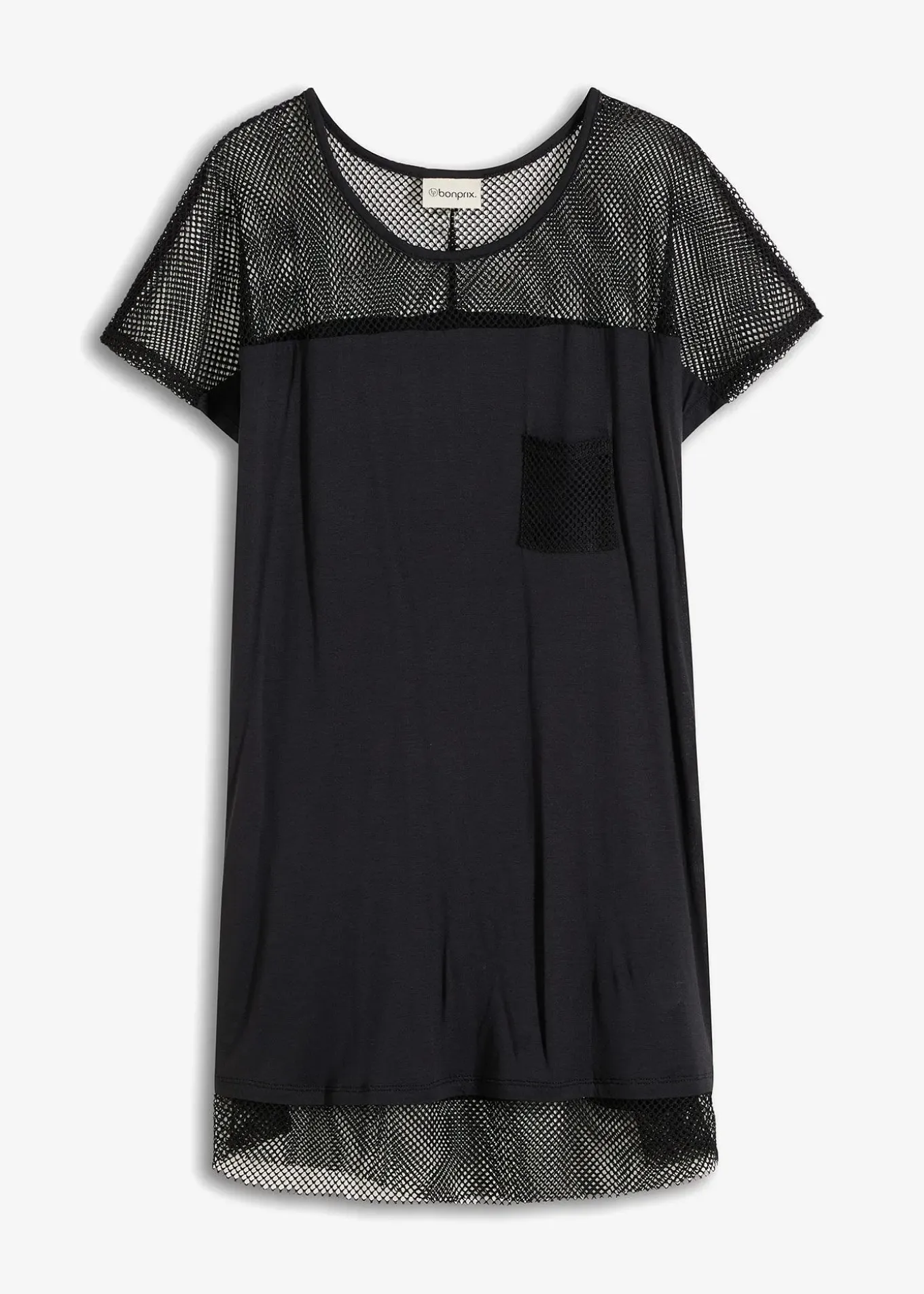 T-shirt de plage avec encolure ronde et empiècements en matière filet.