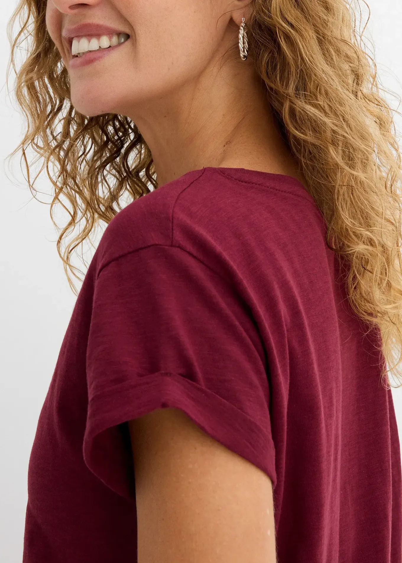 Élégant T-shirt long et boxy avec revers en bas de manches