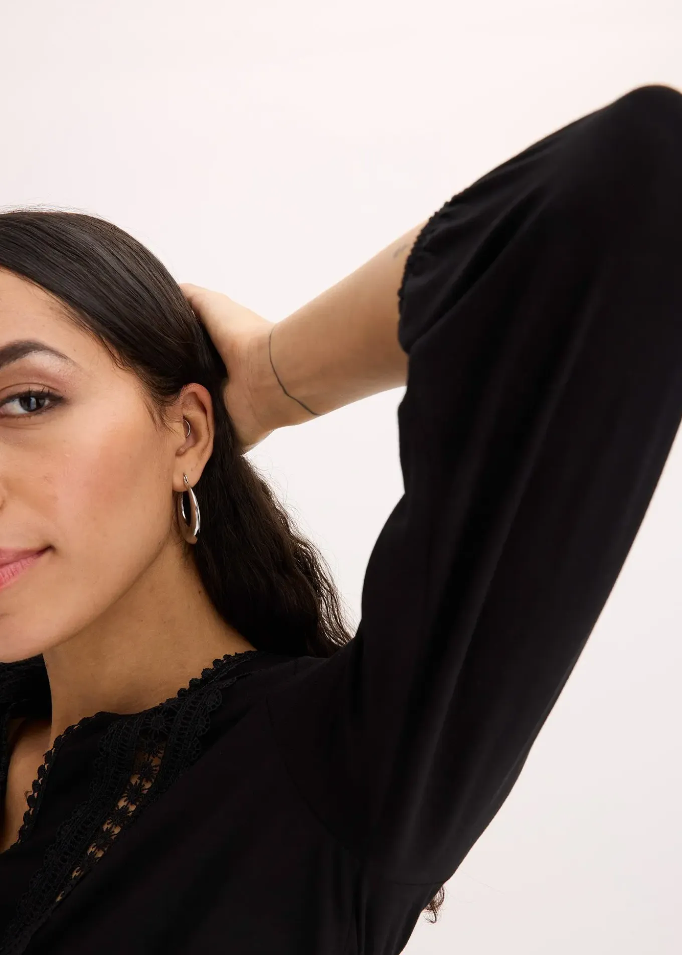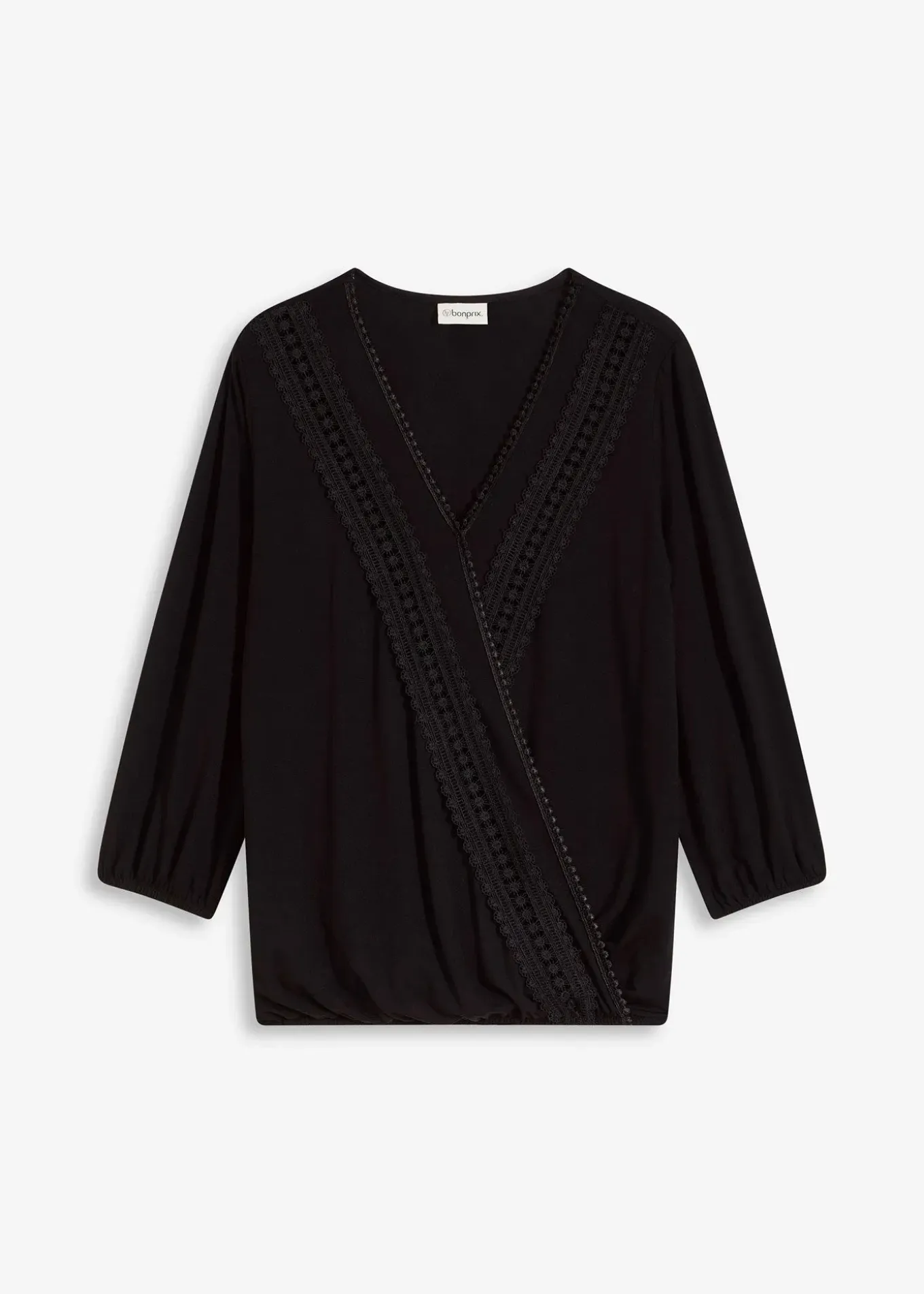 Blouse intemporelle, style portefeuille, avec dentelle