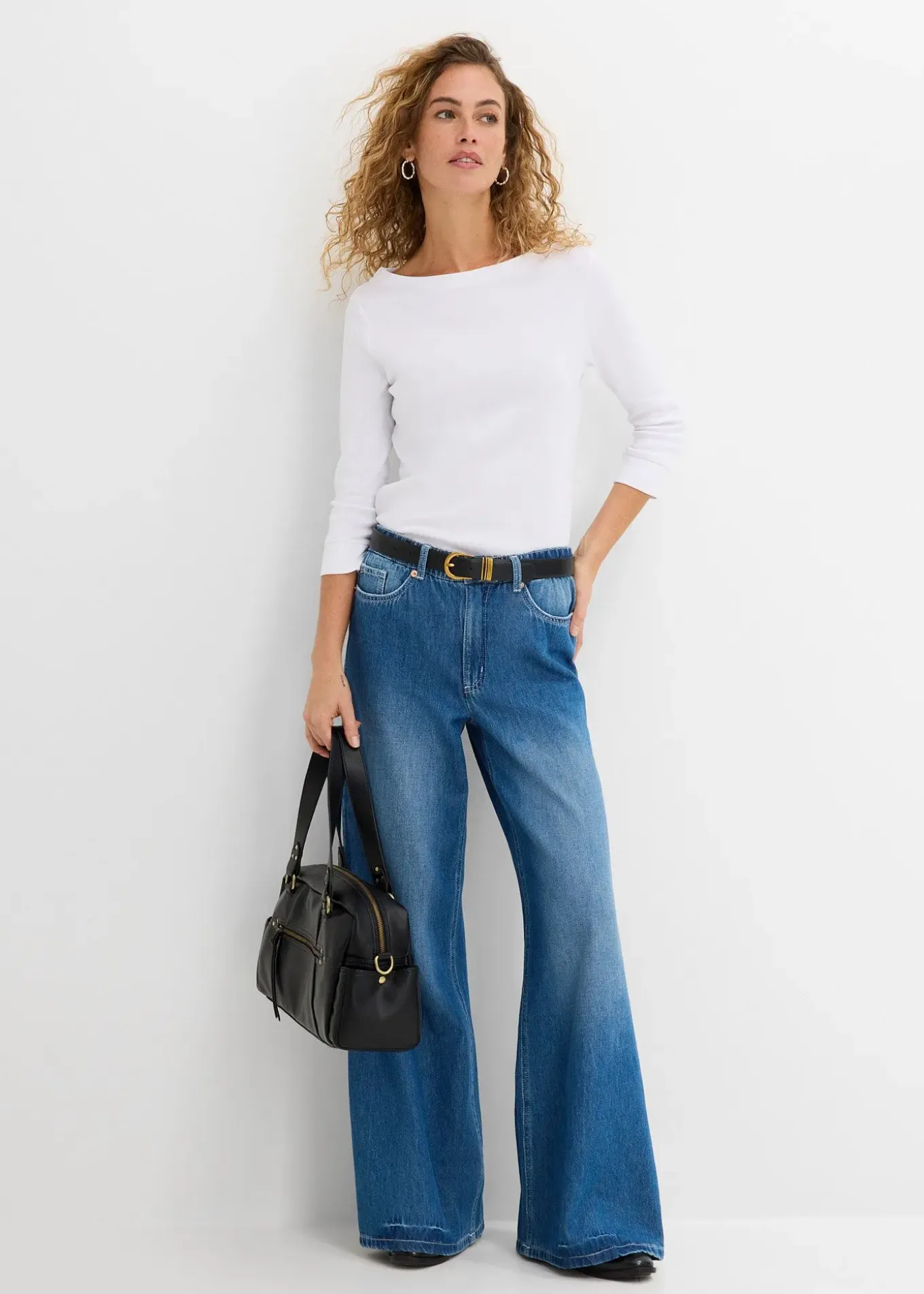 T-shirt extensible confortable à manches 3/4 et encolure bateau