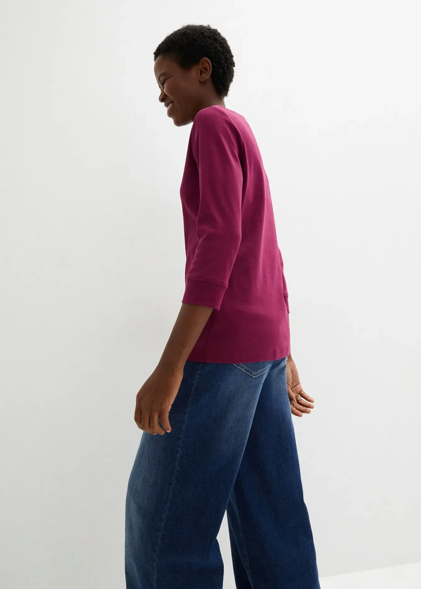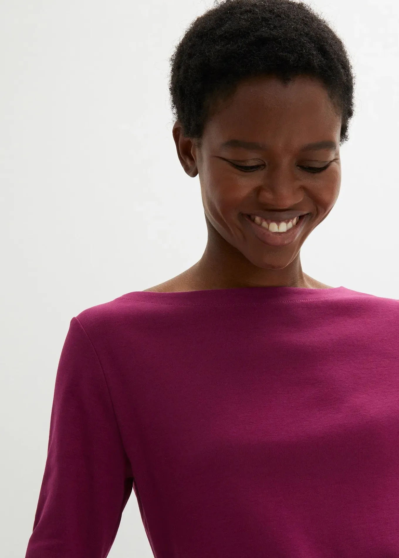 T-shirt extensible confortable à manches 3/4 et encolure bateau