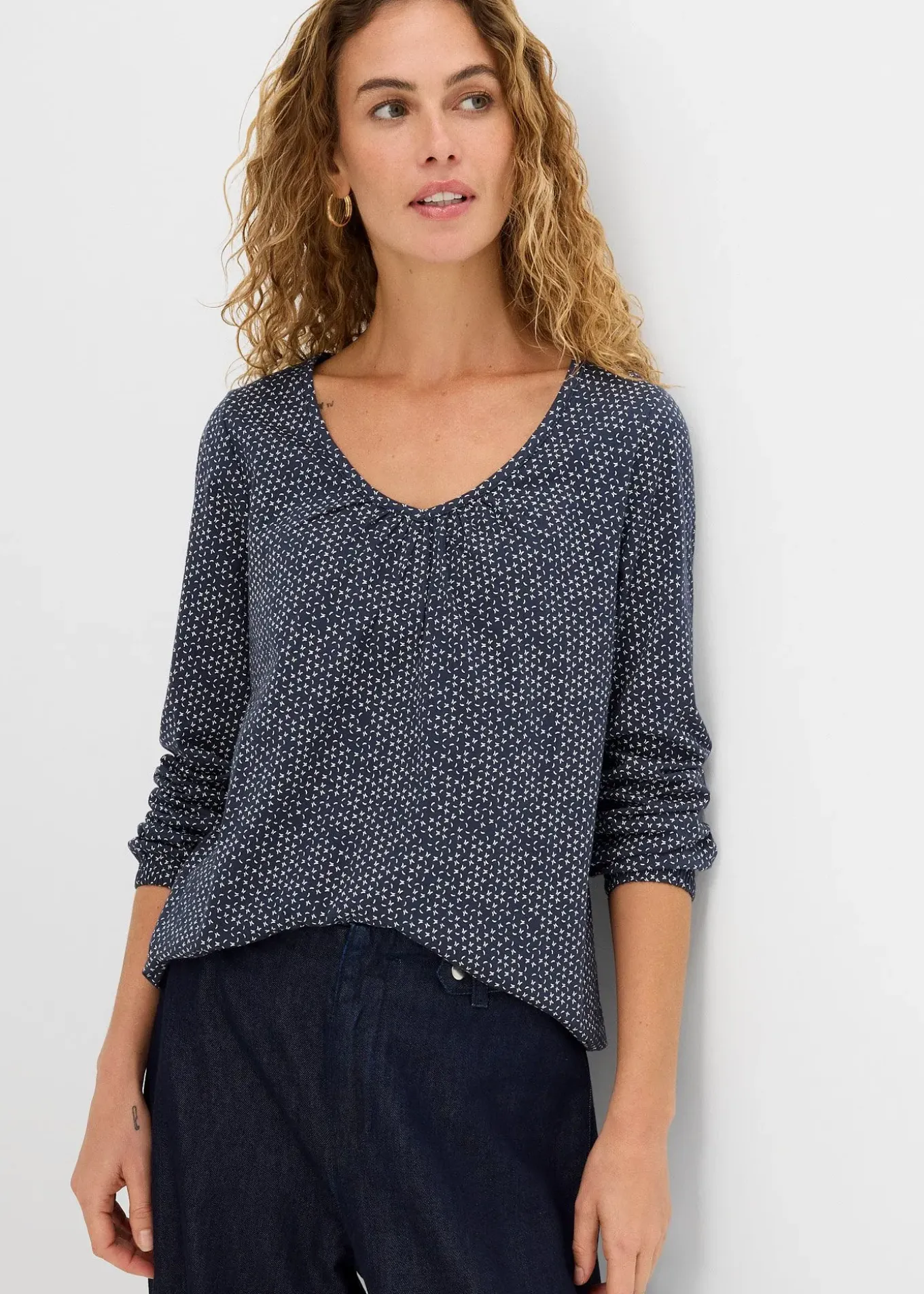 T-shirt coton confortable à manches longues et finitions élastiquées