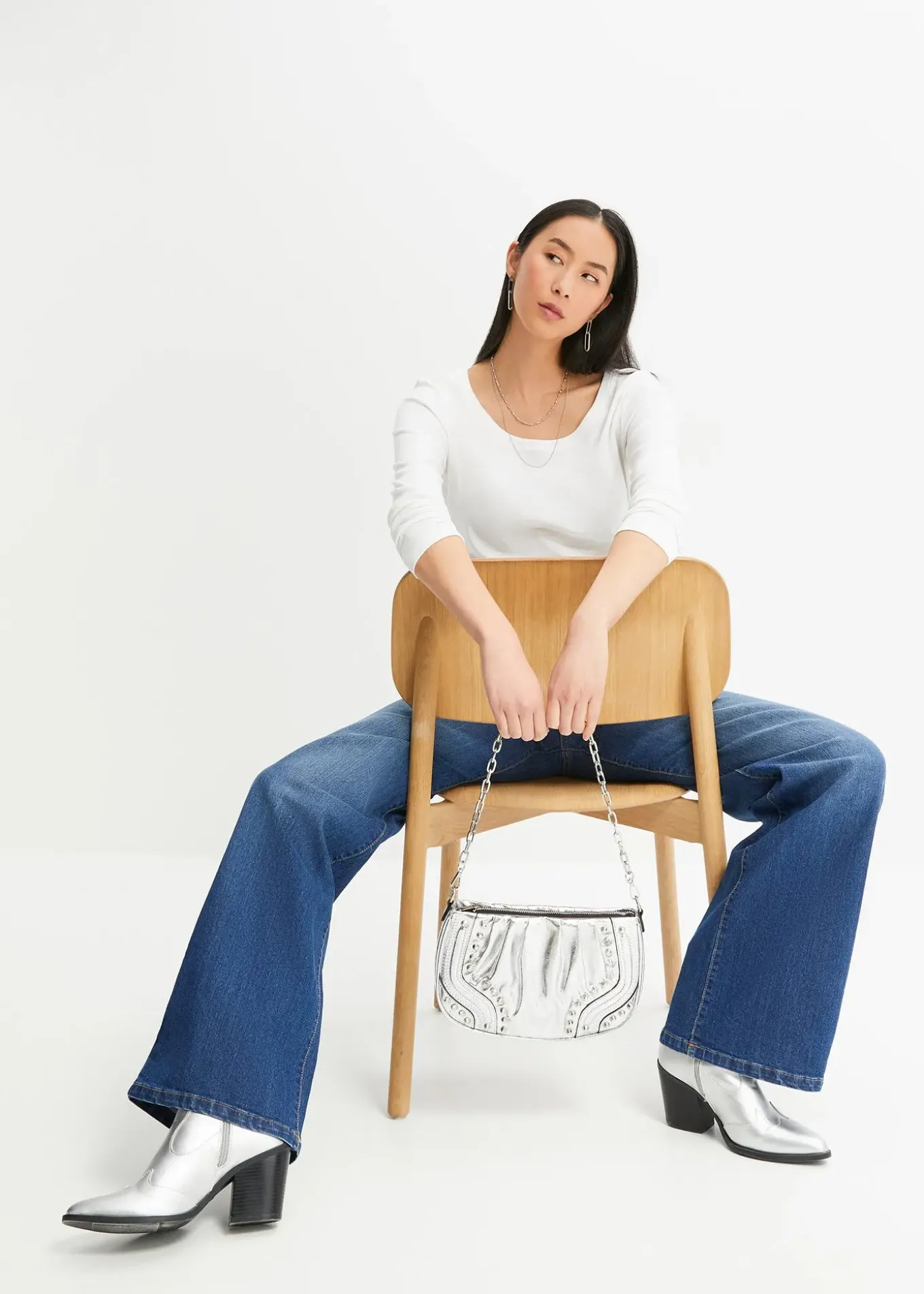 T-shirt simple de bpc à encolure ronde et manches longues, légèrement cintré.