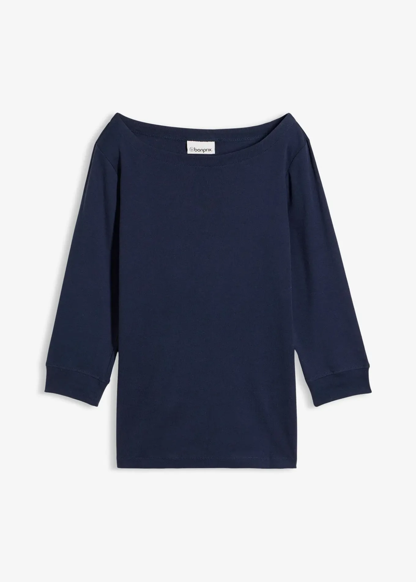 T-shirt extensible confortable à manches 3/4 et encolure bateau
