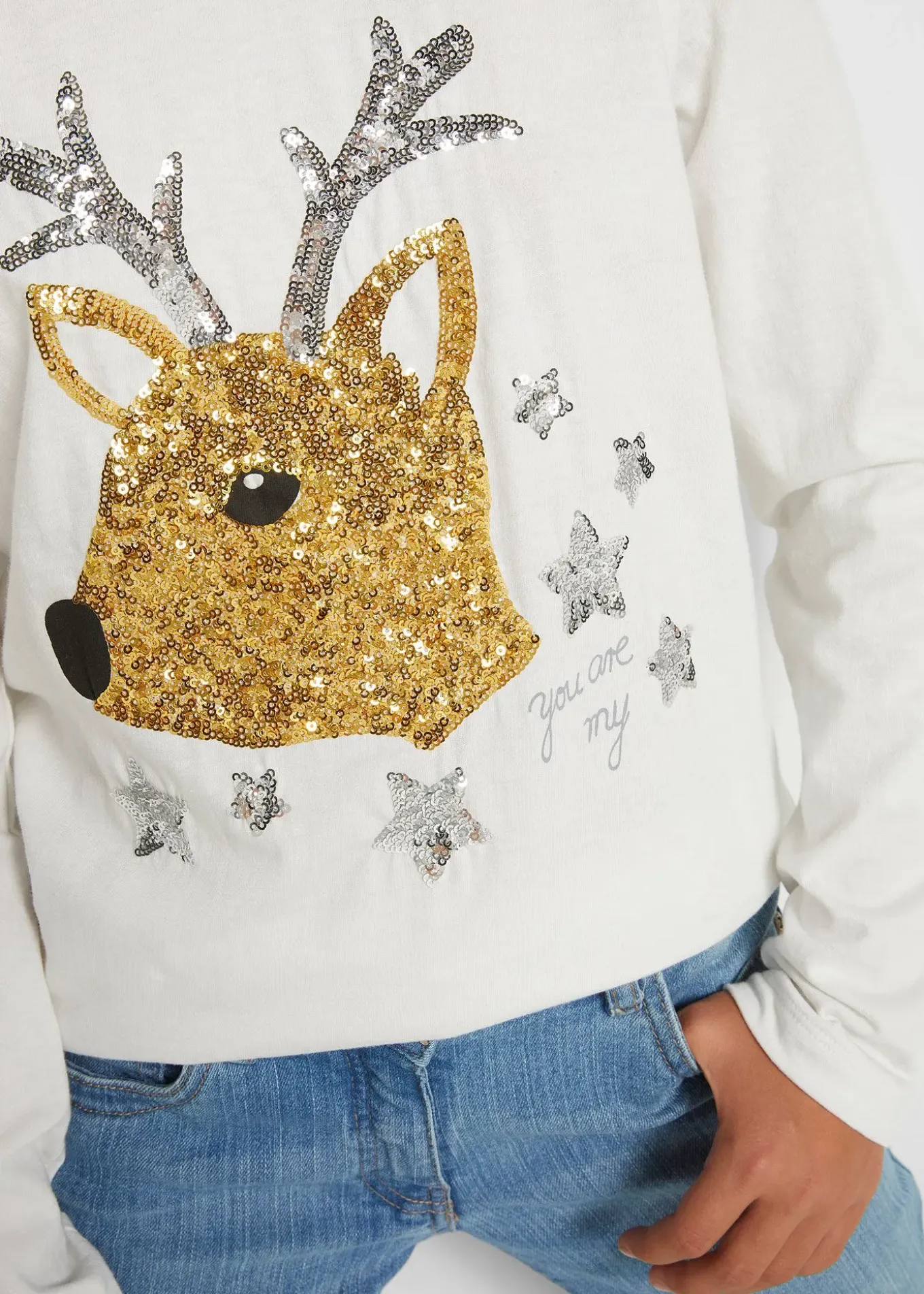 Joli T-shirt à manches longues avec motif de Noël en sequins