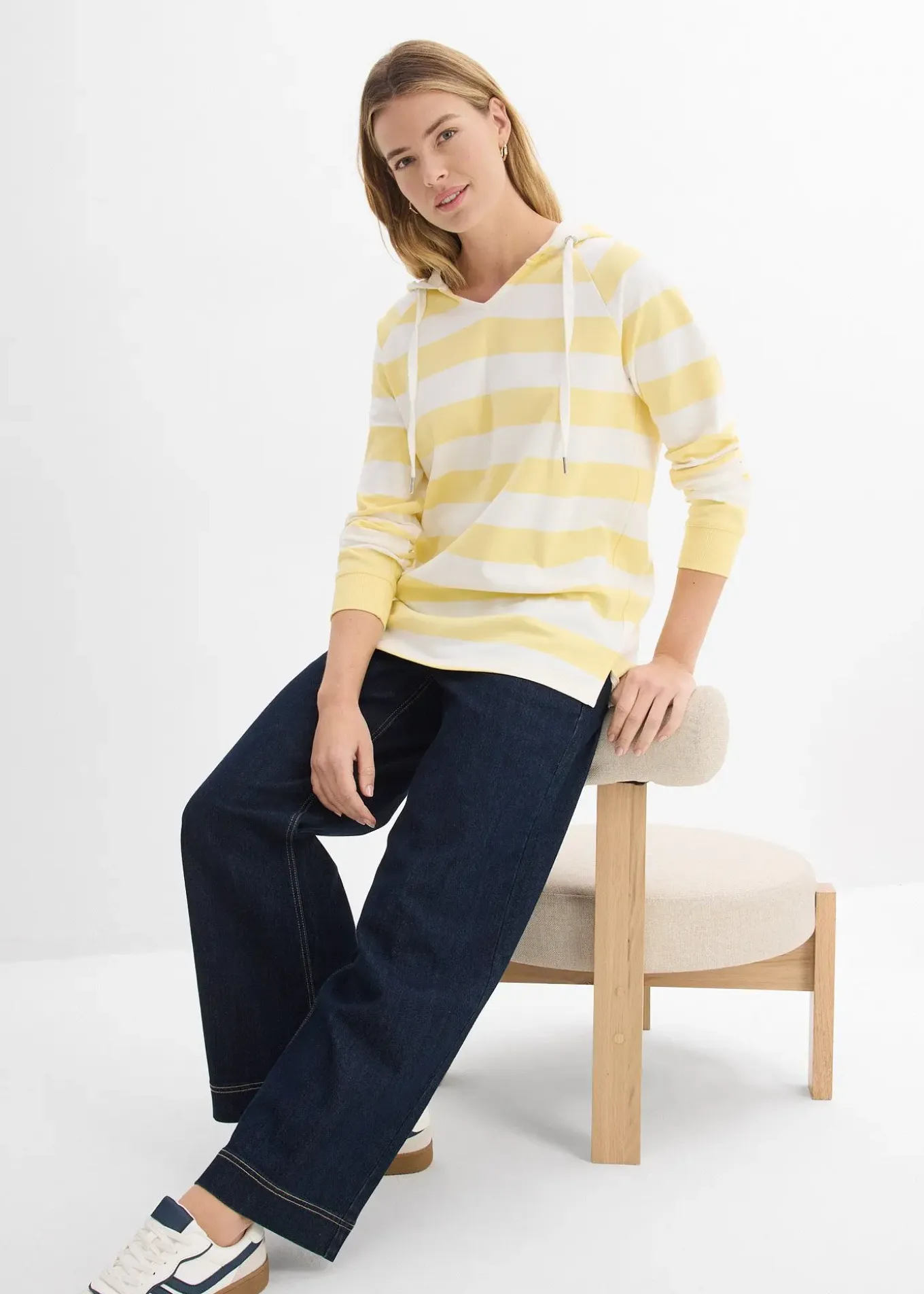 T-shirt manches longues à capuche, look décontracté