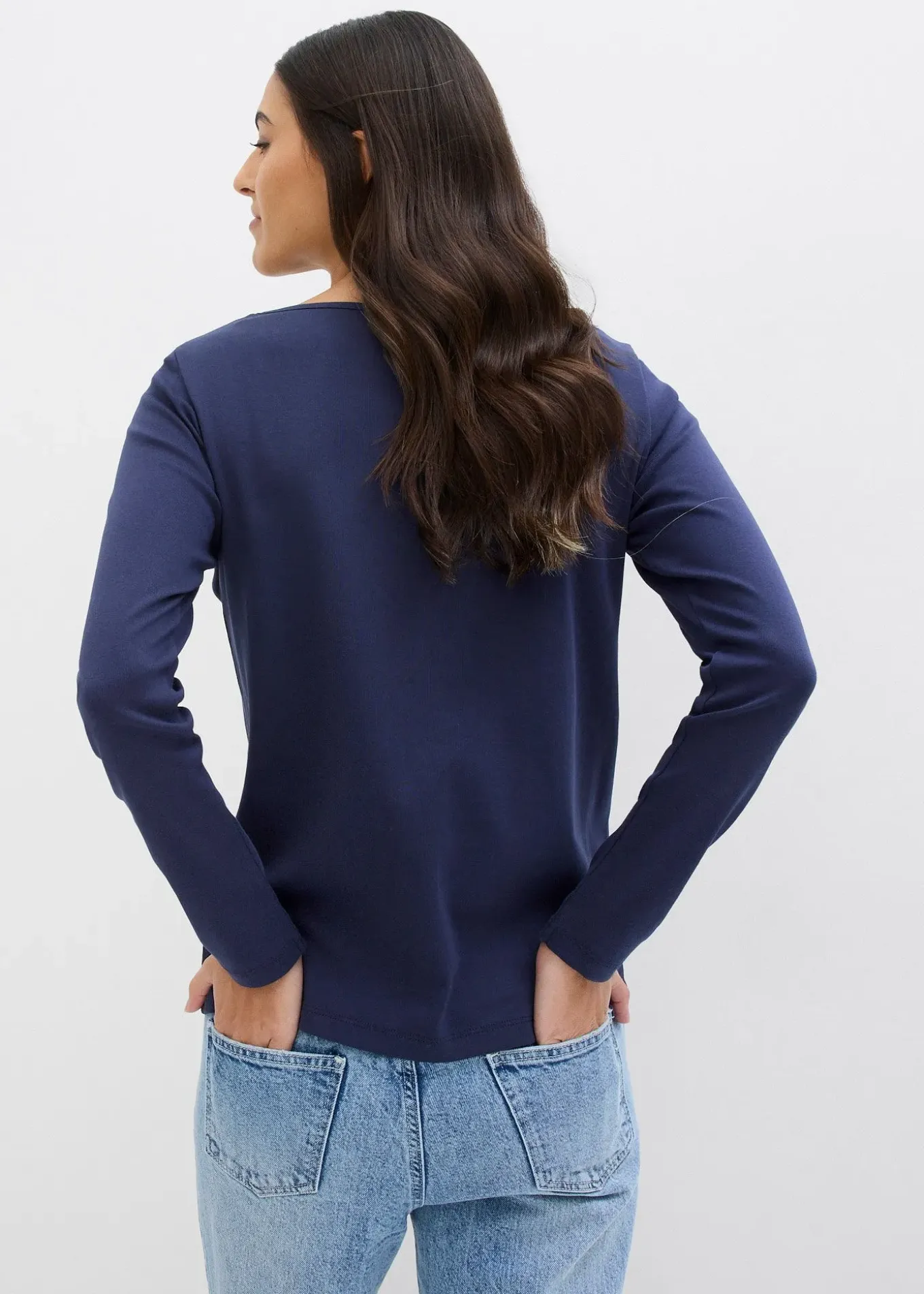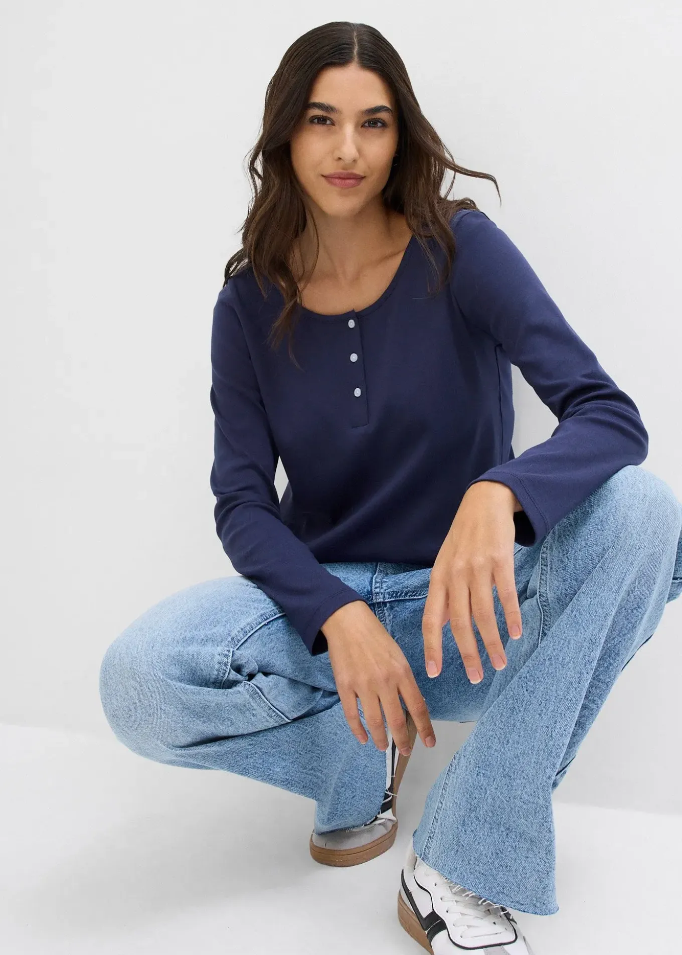T-shirt confortable à manches longues et patte de boutonnage. Long. env. 66 cm, lavage machine.
