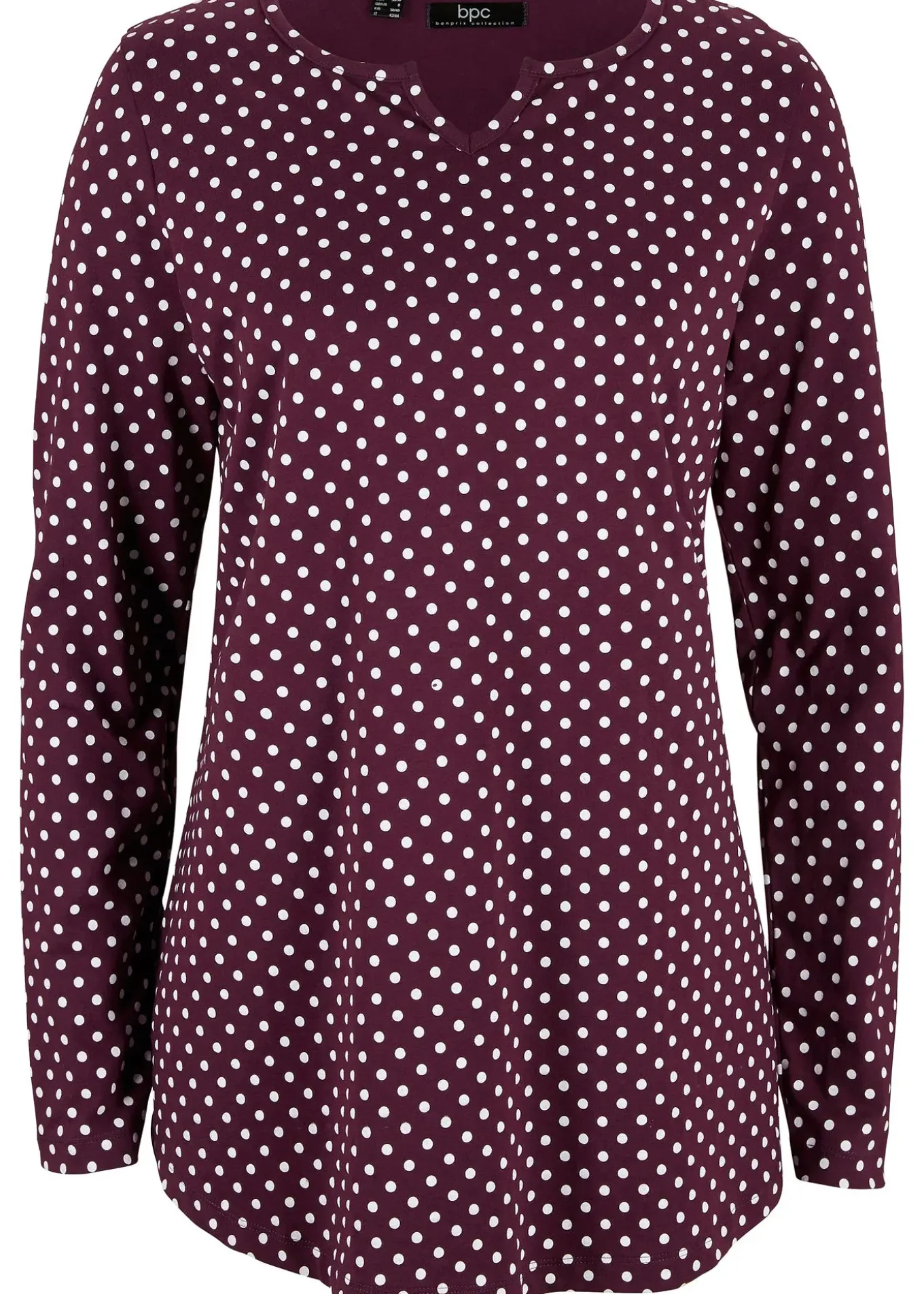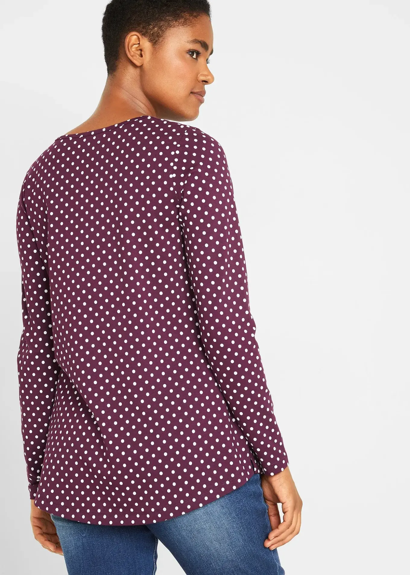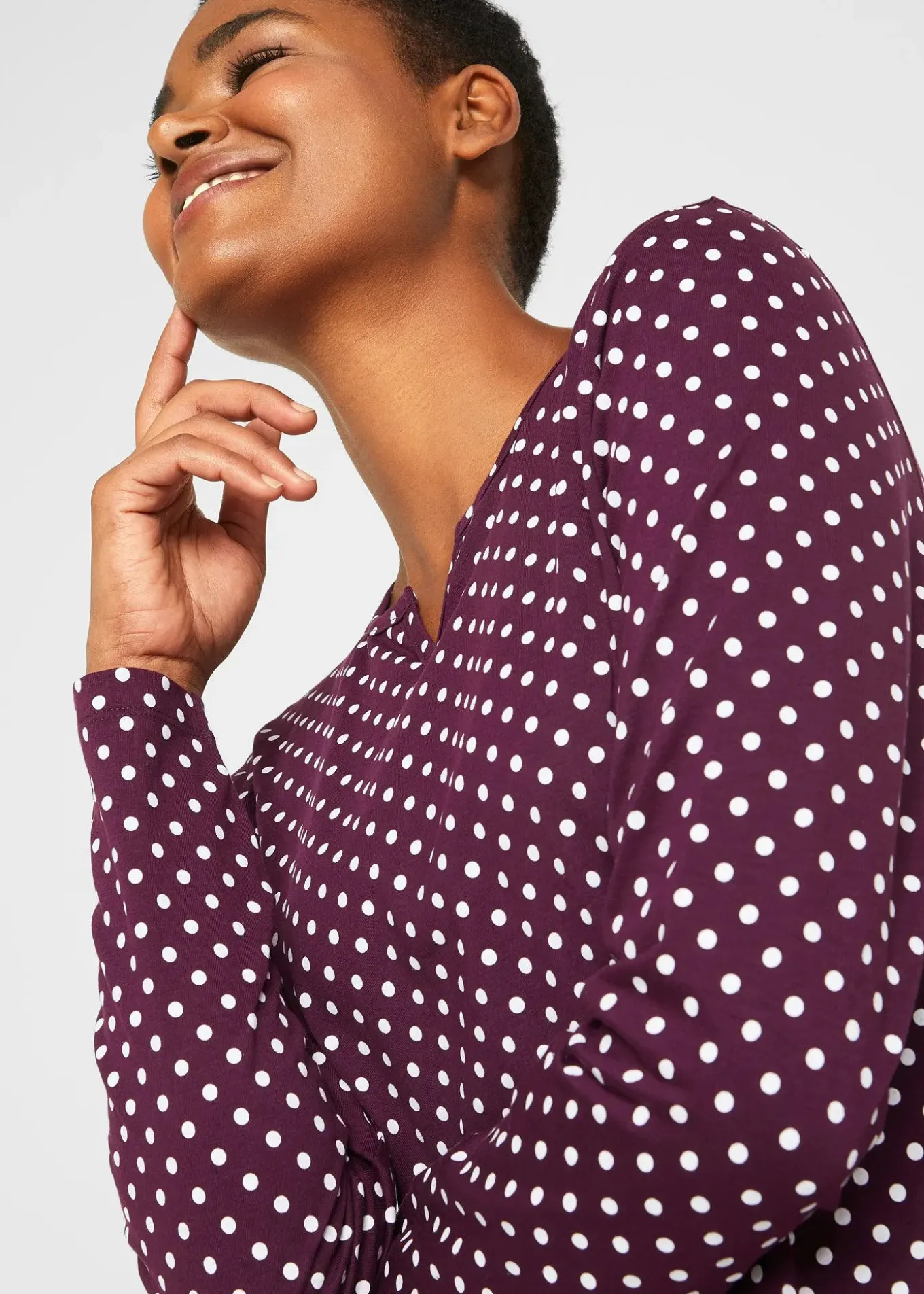 T-shirt polyvalent à manches longues et pois avec fentes latérales pour plus d’aisance