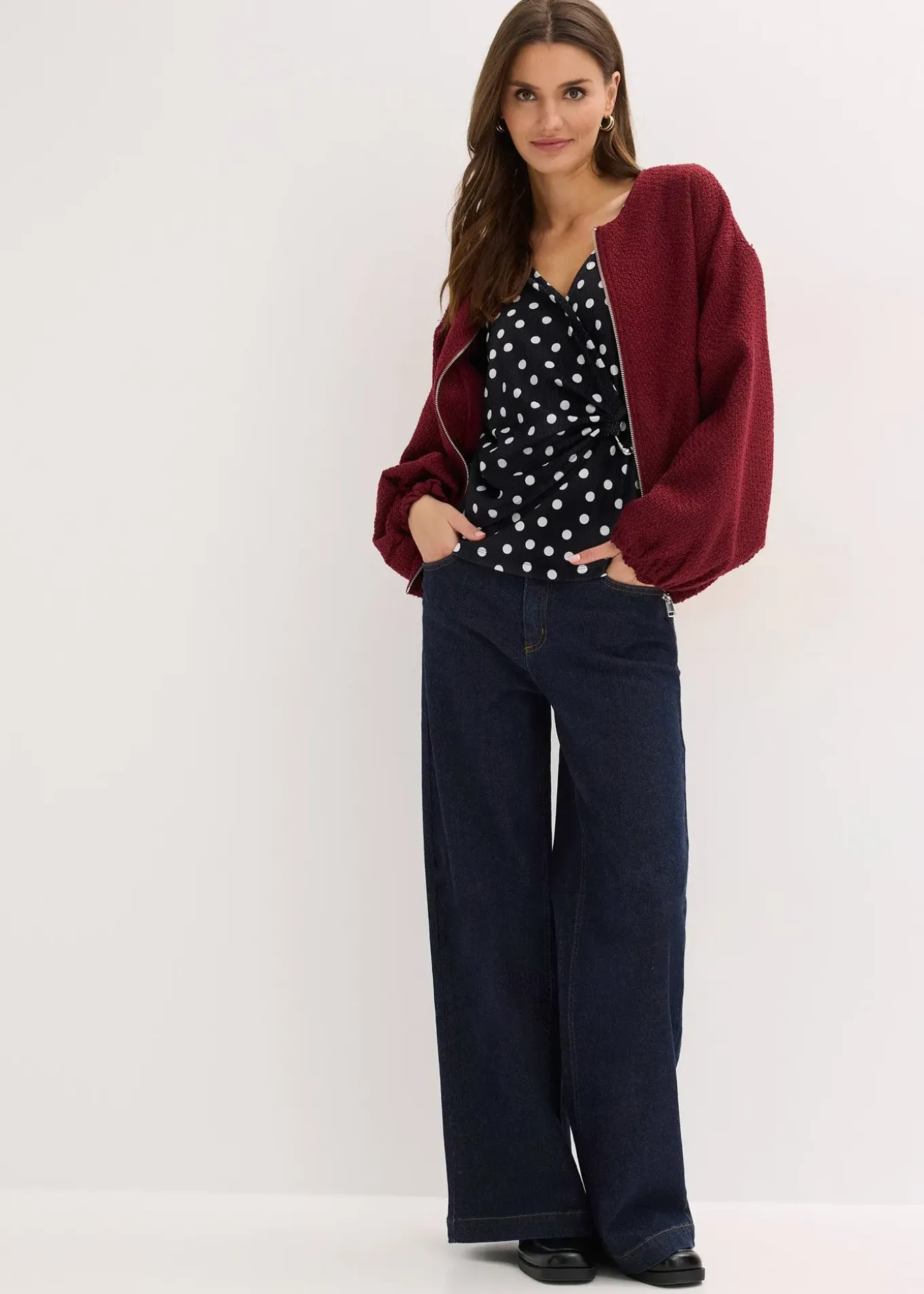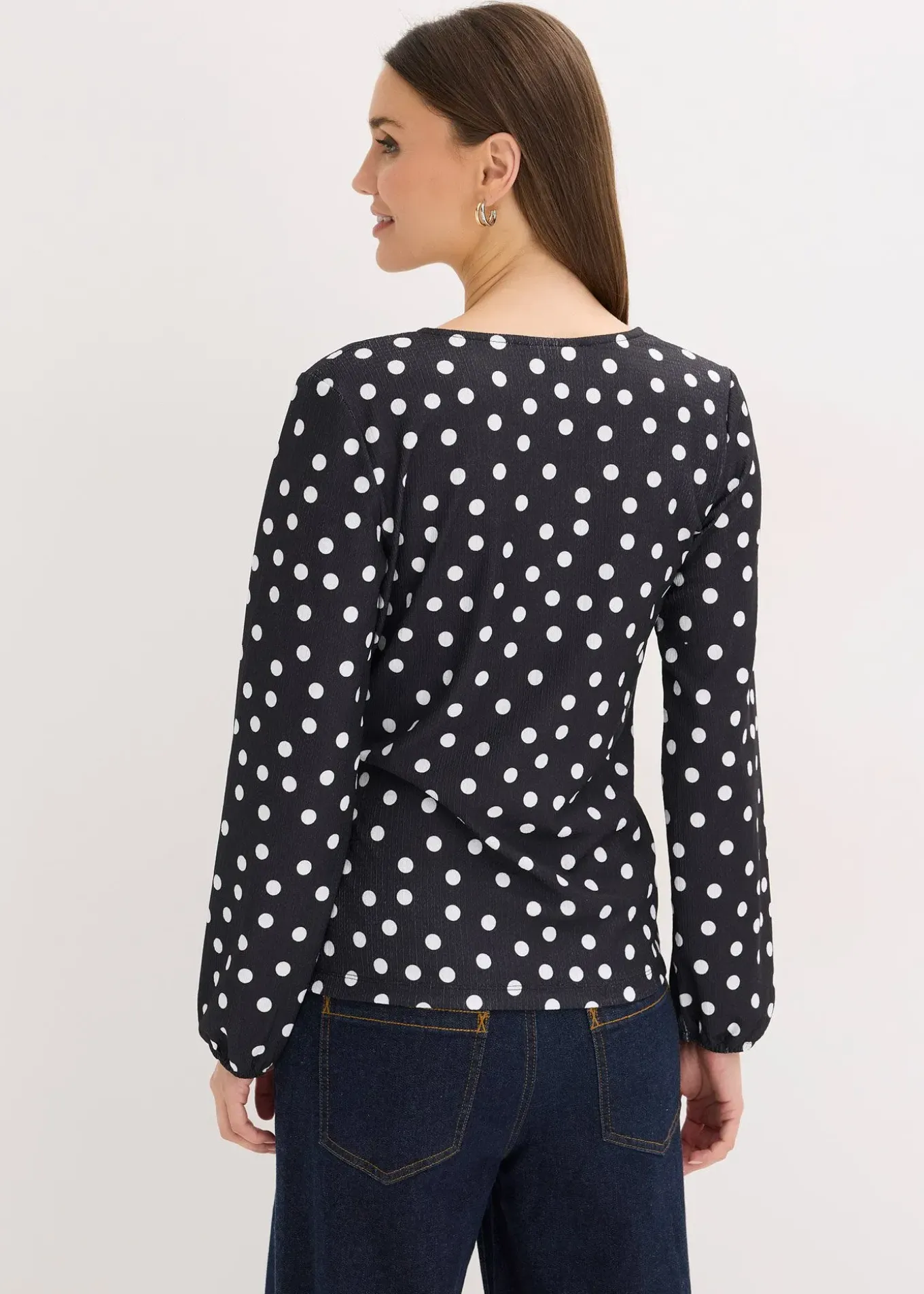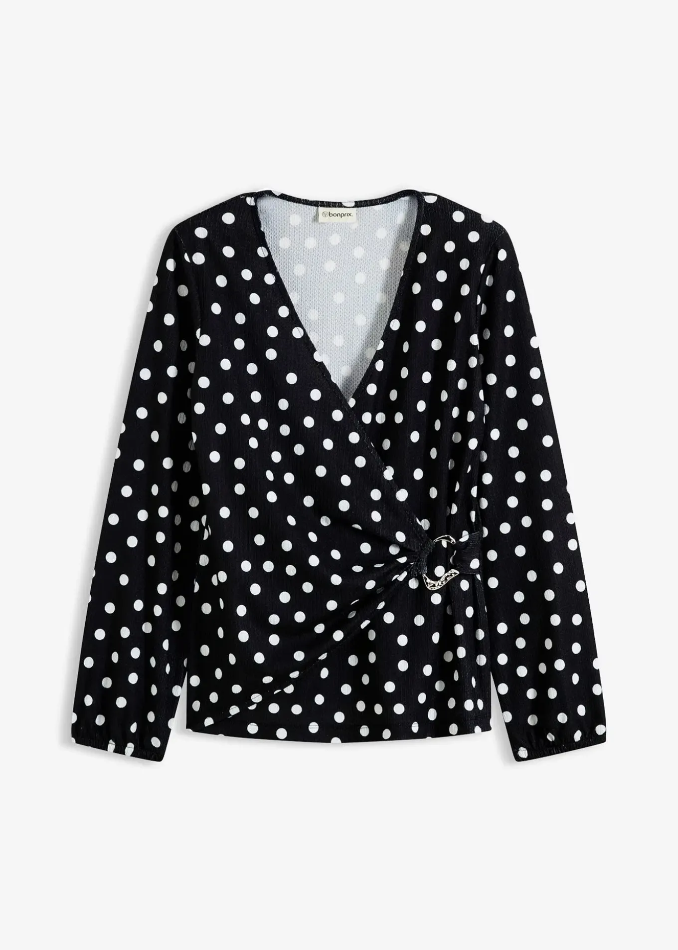 T-shirt manches longues à imprimé graphique et anneau décoratif à la taille