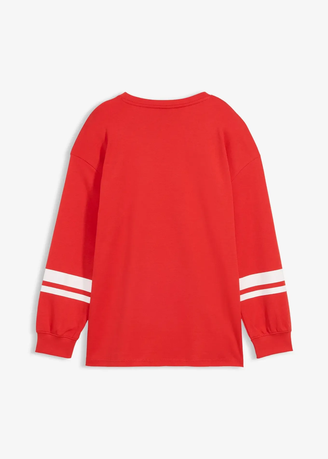 T-shirt manches longues oversize moderne avec des détails rayés sur les manches et un imprimé devant pour un look sportif