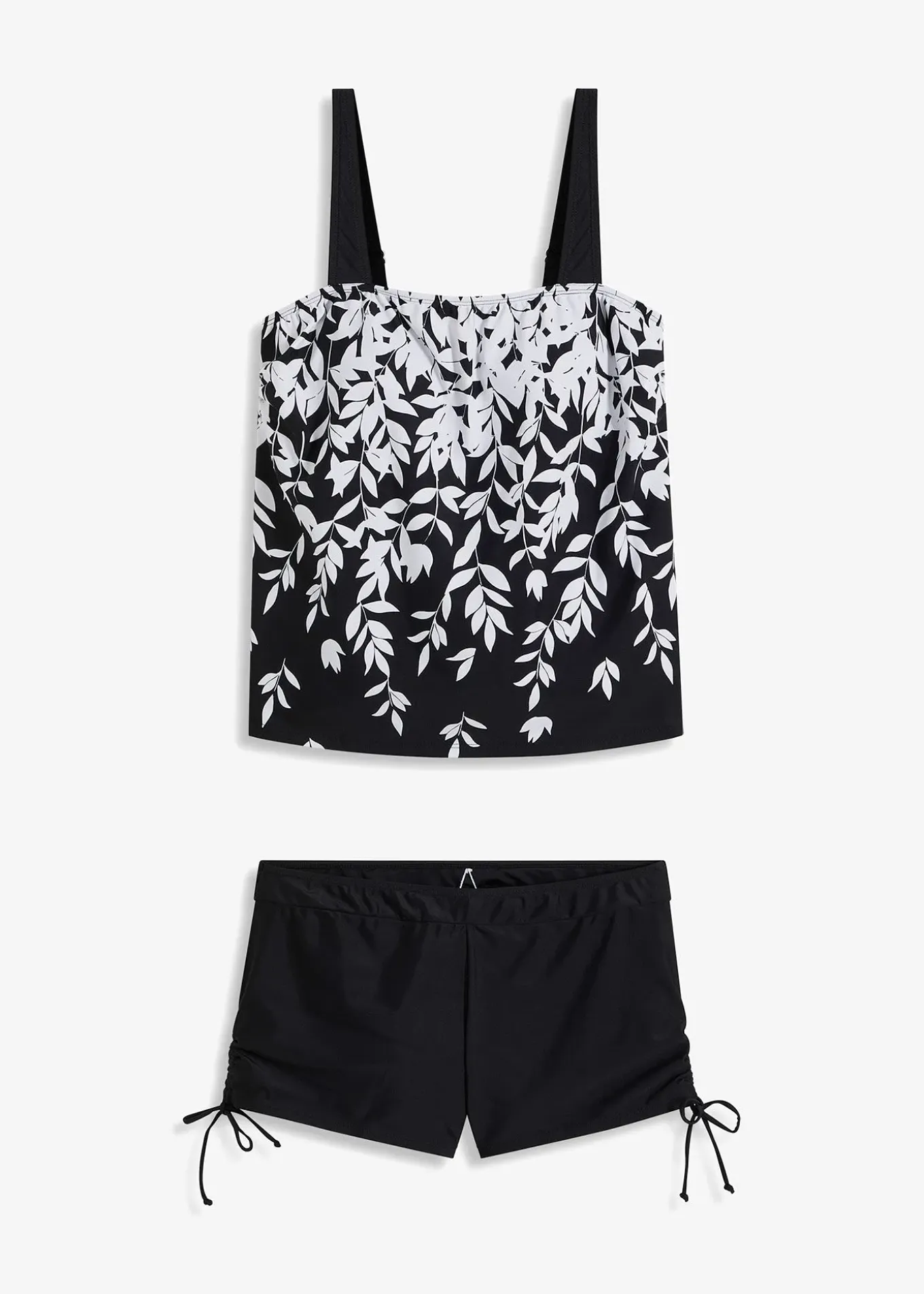 Avec coques souples intégrées, doublure poitrine et bande élastique sous poitrine. Bretelles réglables. Bas de maillot avec liens à nouer réglables sur les côtés.