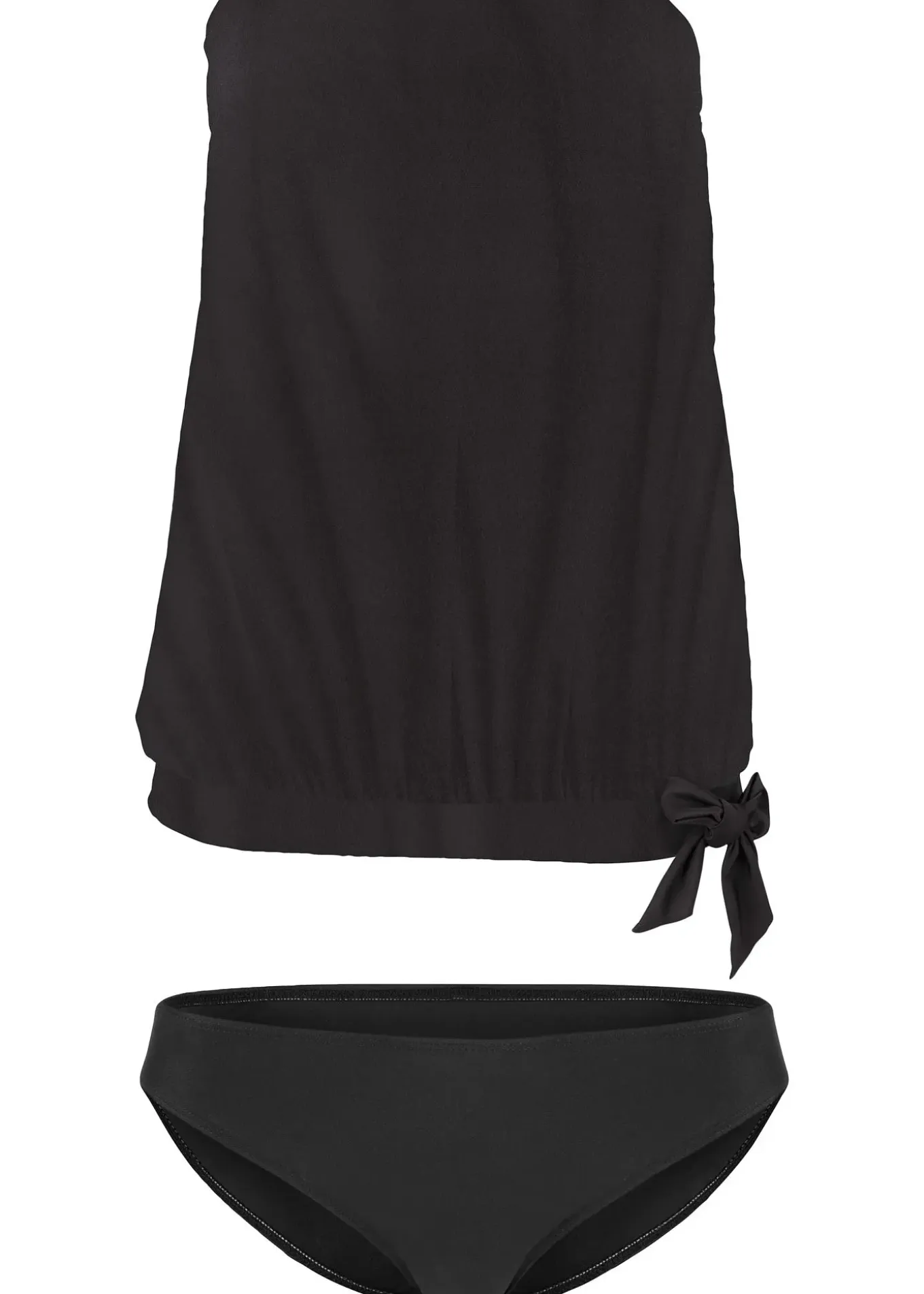 Tankini de bpc selection. Haut ample à nouer sur les côtés avec de jolis plis, des bretelles amovibles multi-positions et un mélange de motifs élégants. Doublure poitrine, bonnets souples intégrés et bande élastiquée sous la poitrine. Culotte classique.