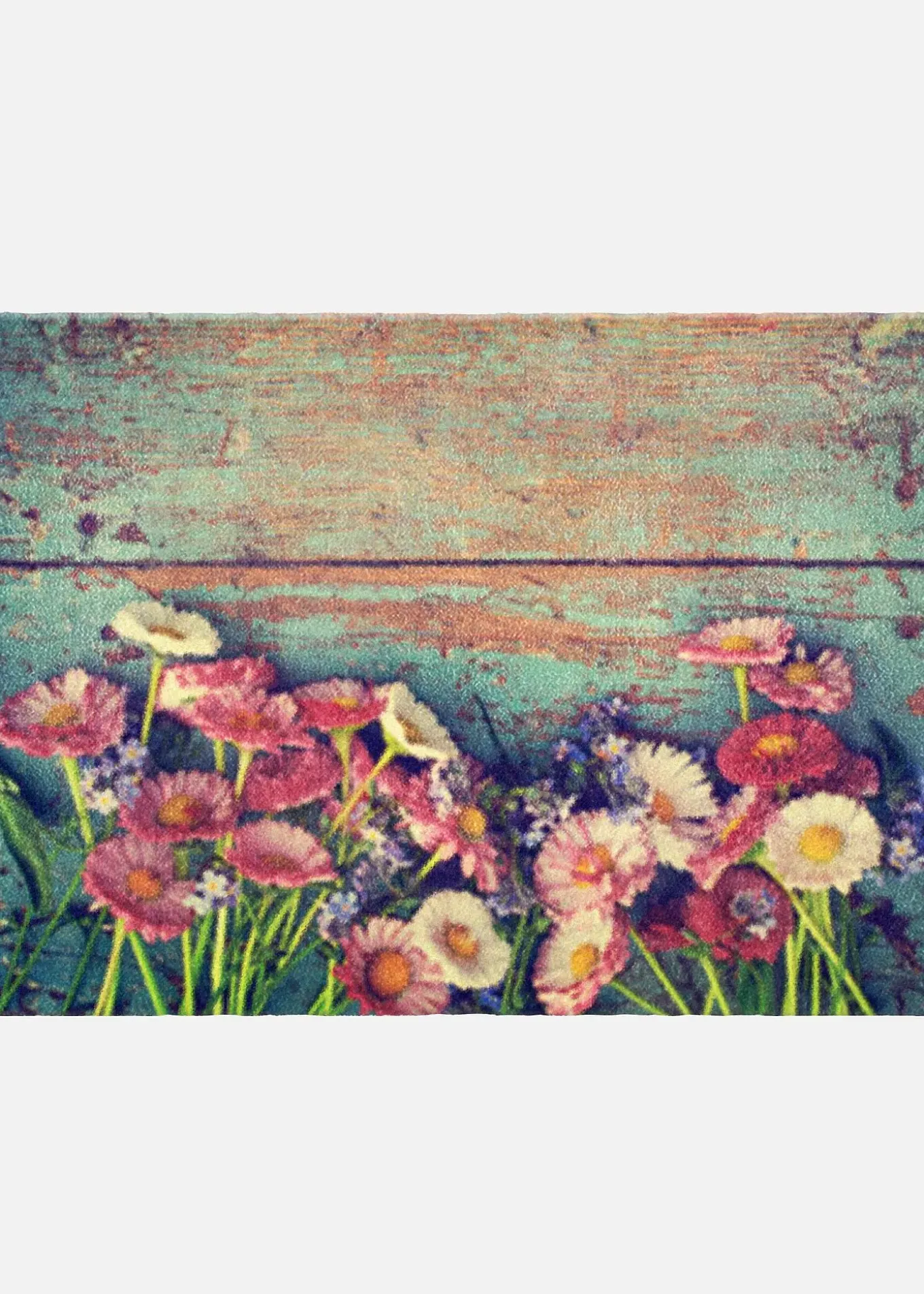 Tapis de protection avec imprimé floral charmant, lavable et facile d’entretien, bord imprimé, dessous avec revêtement vinyle antidérapant.Livré enroulé dans les tailles 1 et 2, plié dans la taille 3.