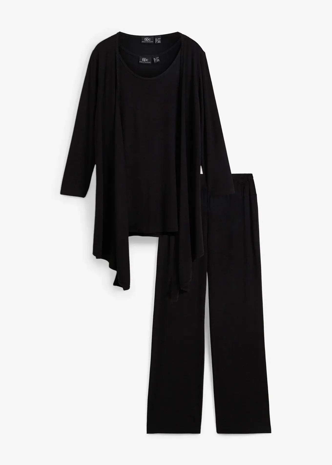 Ensemble en viscose légère et agréable composé d’un top à col rond, d’un gilet manches 3/4 et d’un pantalon 7/8