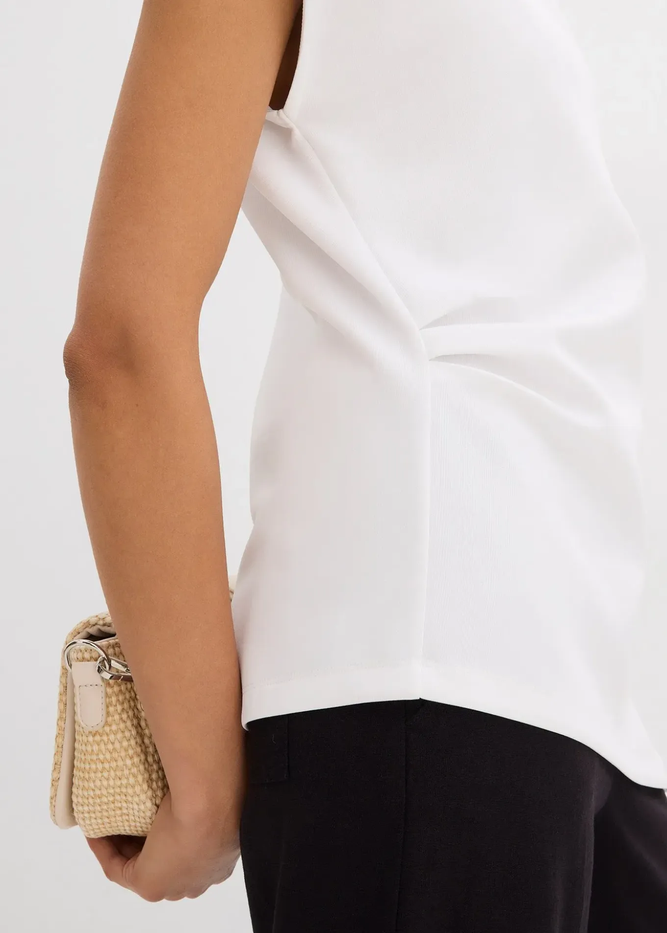 Top sans manches avec détail drapé sur le côté et base asymétrique.