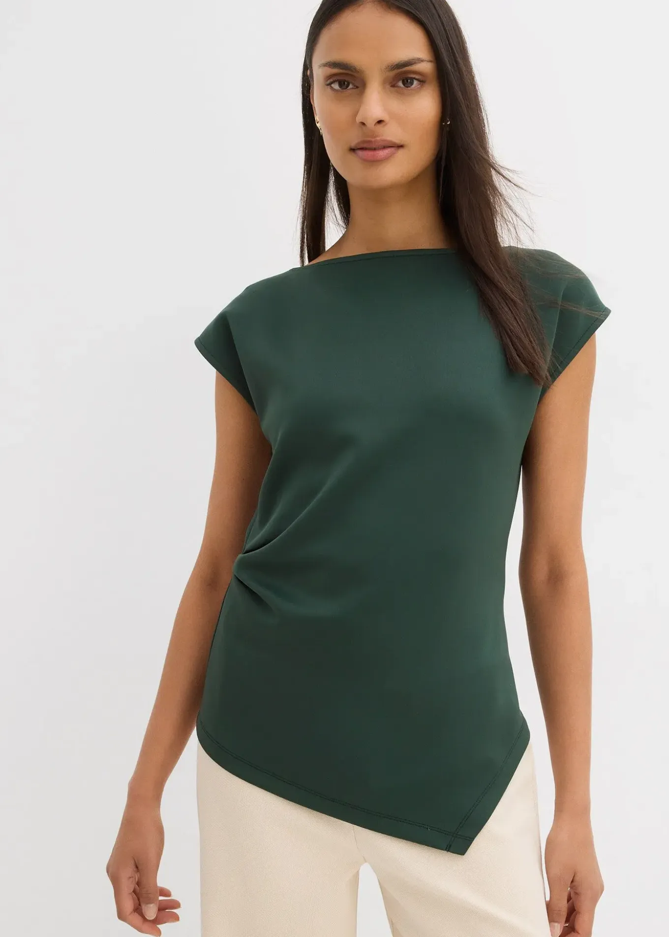 Top sans manches avec détail drapé sur le côté et base asymétrique.