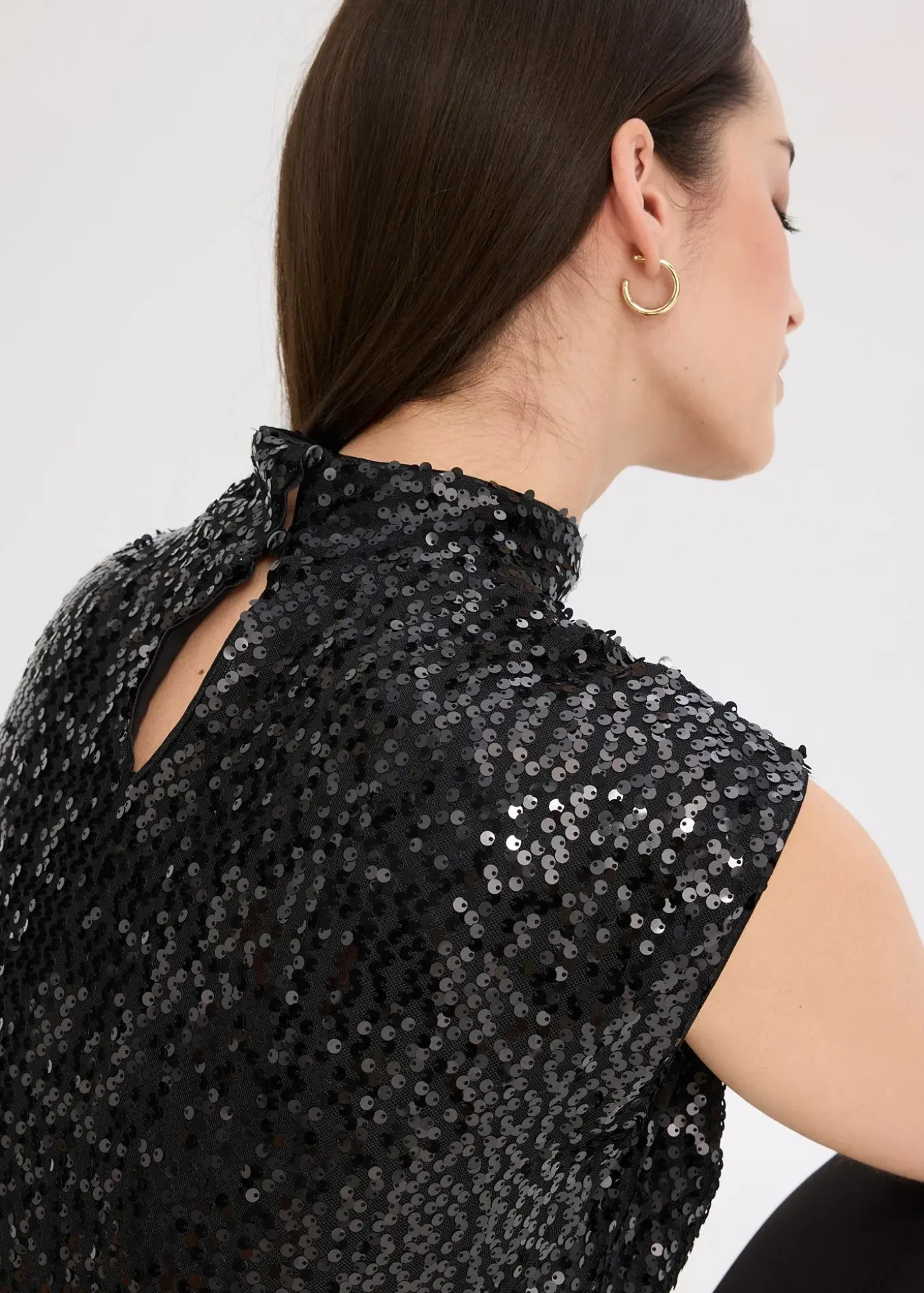 Festif et moderne : top à paillettes avec col et épaules tendance