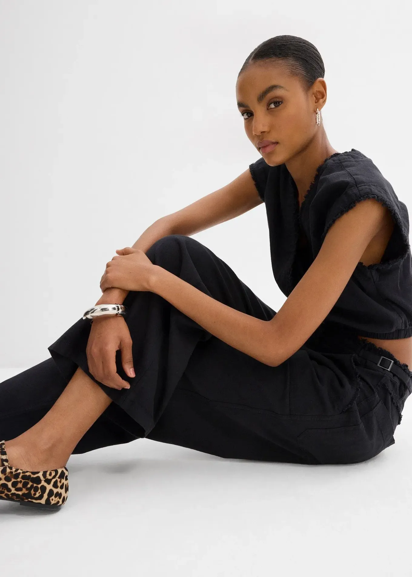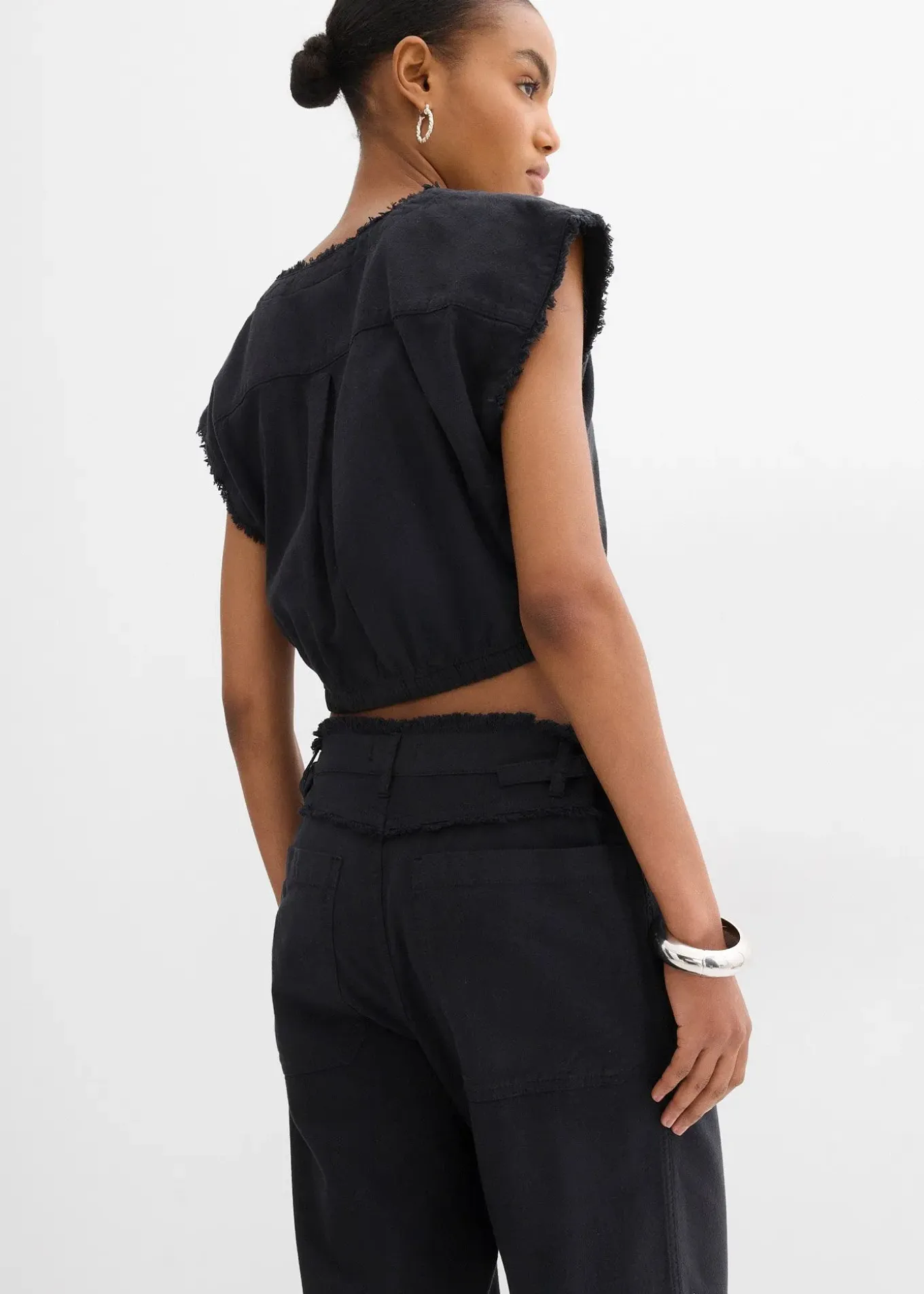 Top blouse raccourci à finitions brutes