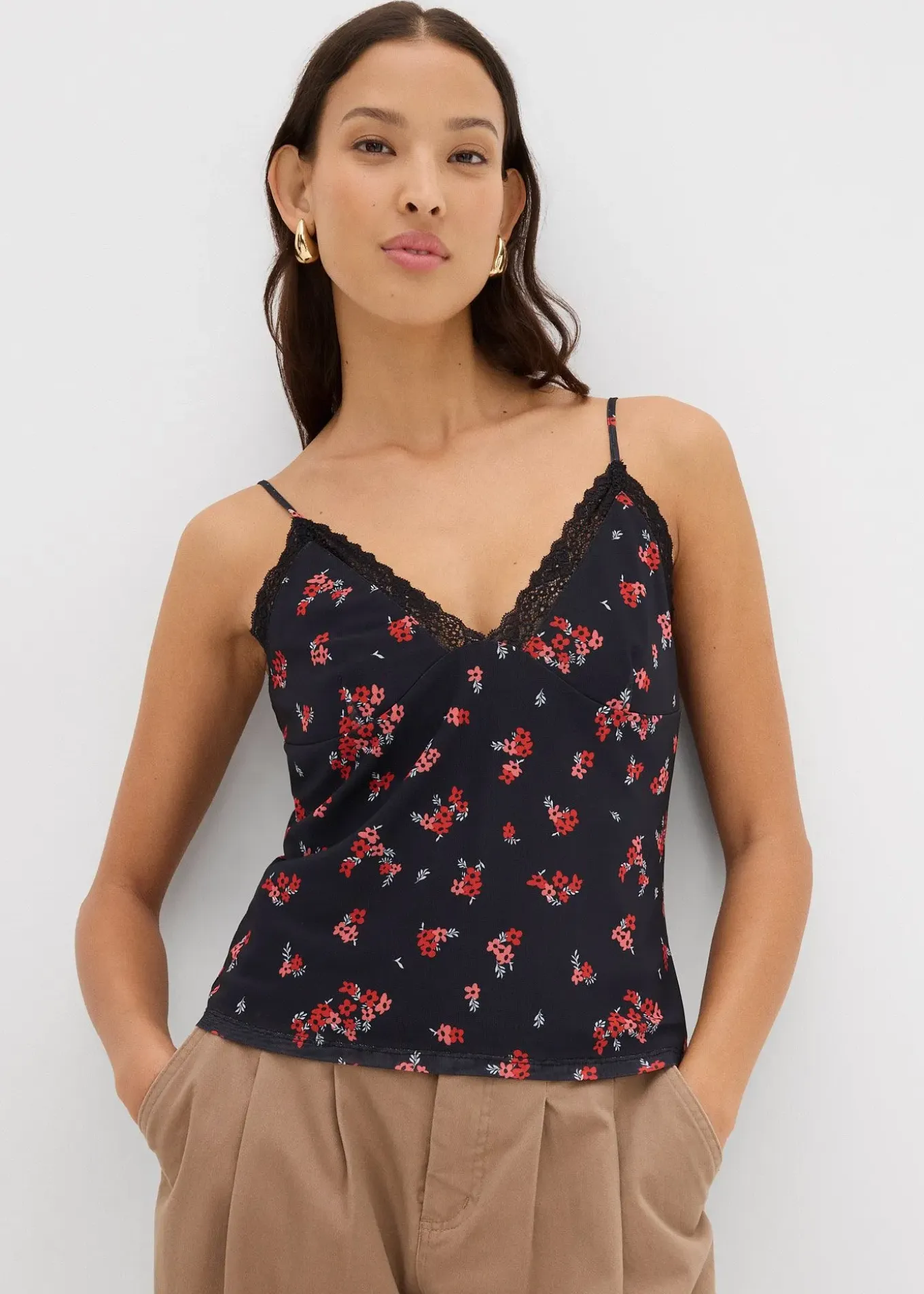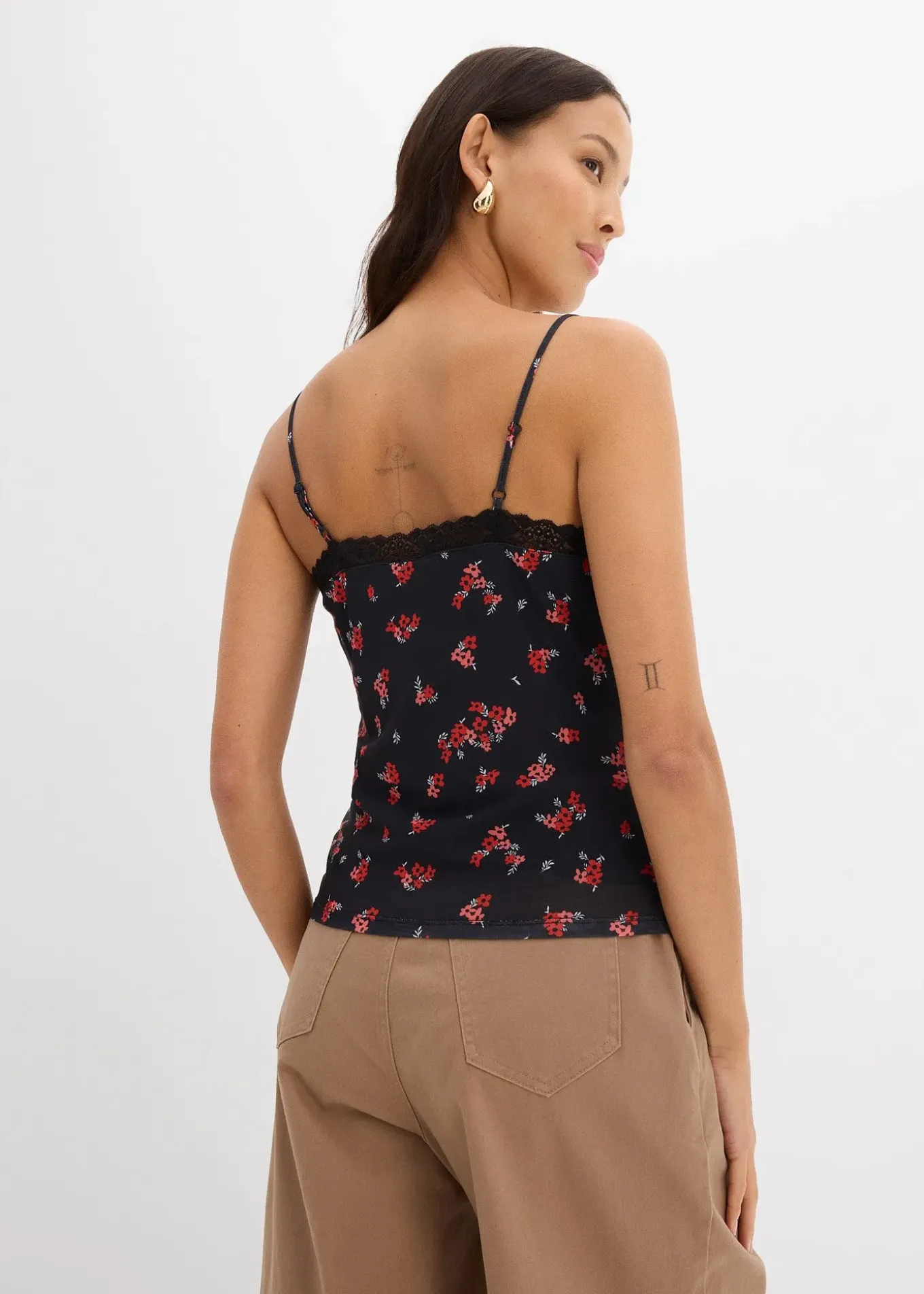 Top fantaisie en mesh avec dentelle et imprimé floral