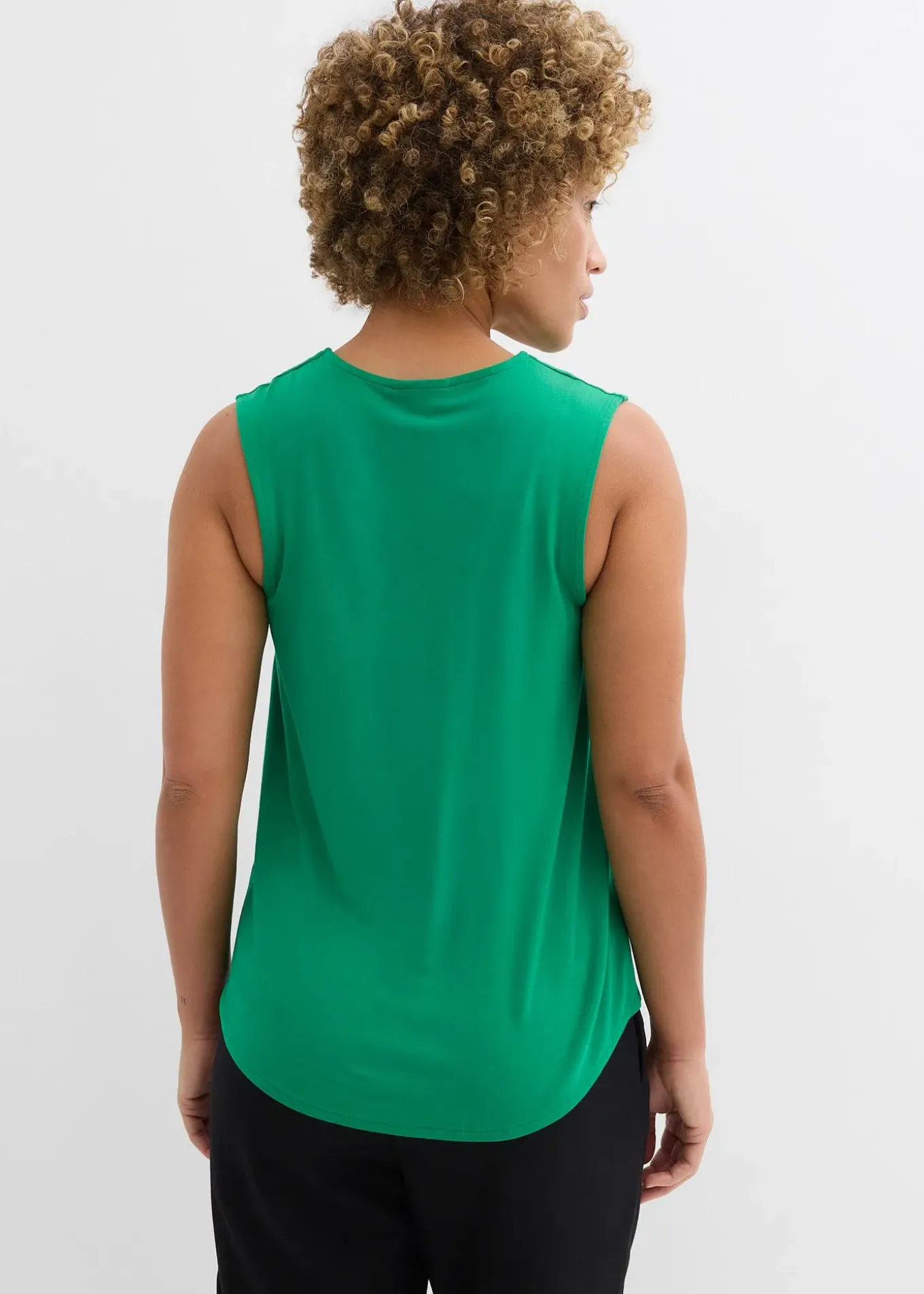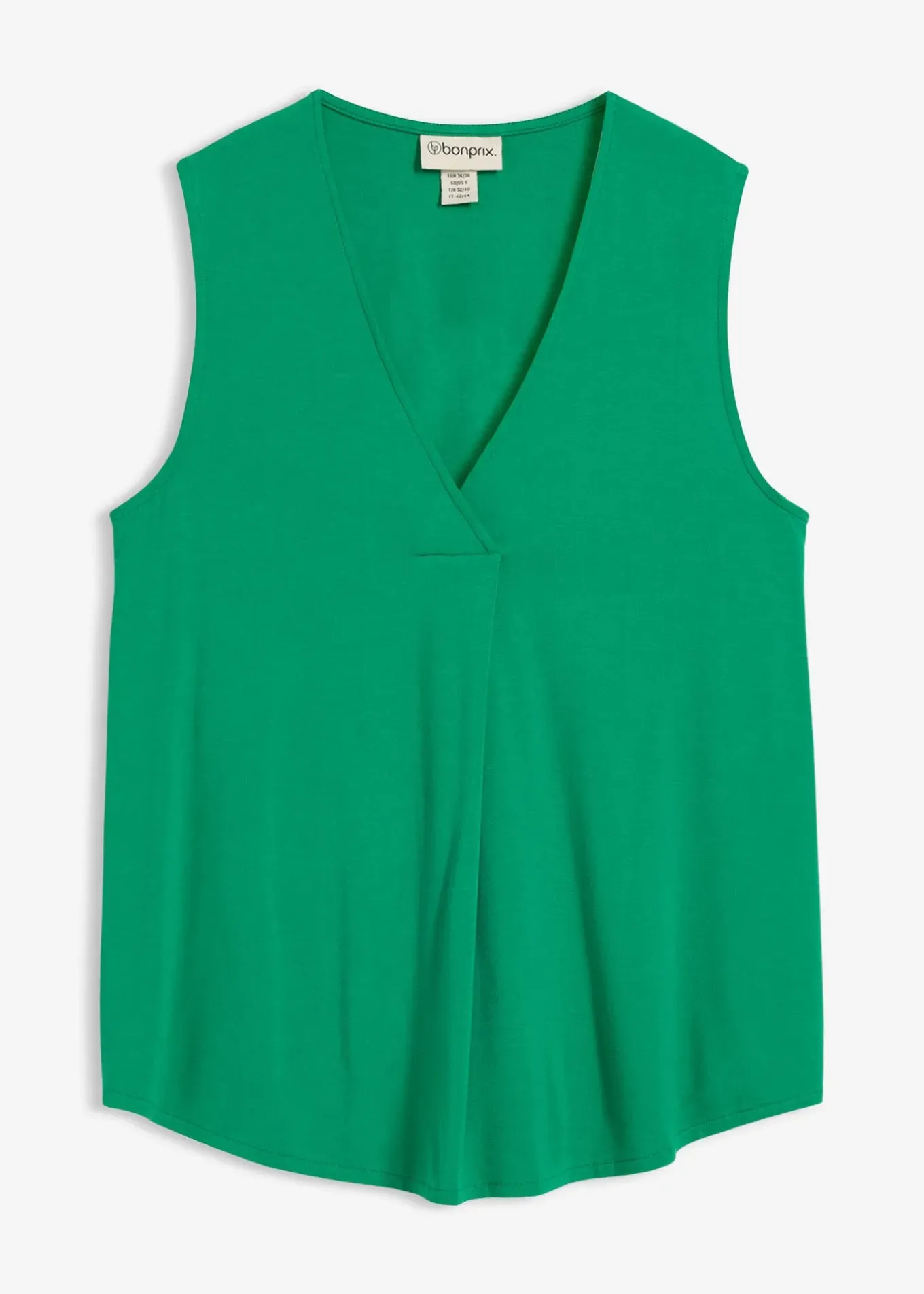 Top forme trapèze de coupe décontractée avec décolleté en V et base arrondie. Long. env. 64 cm.