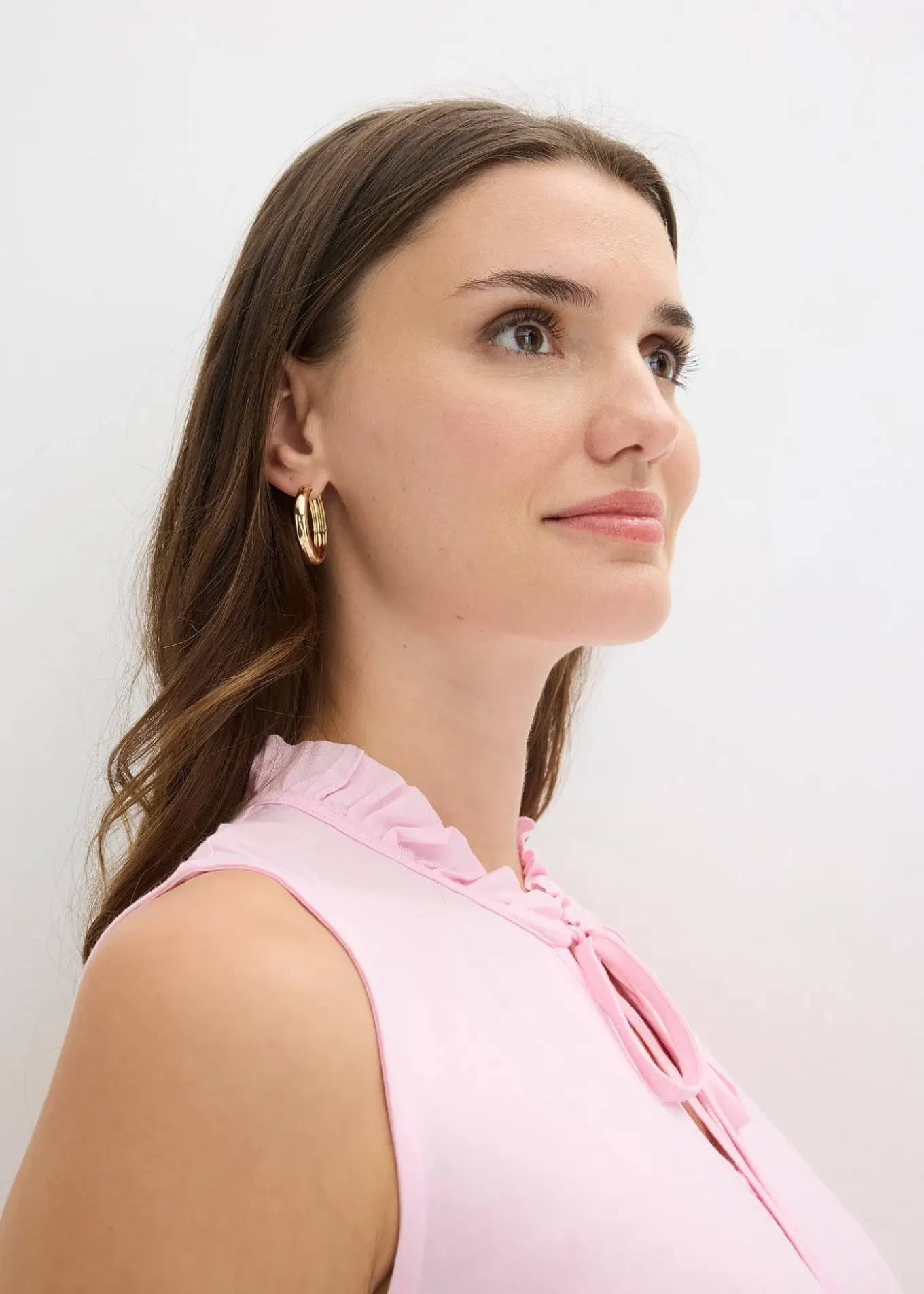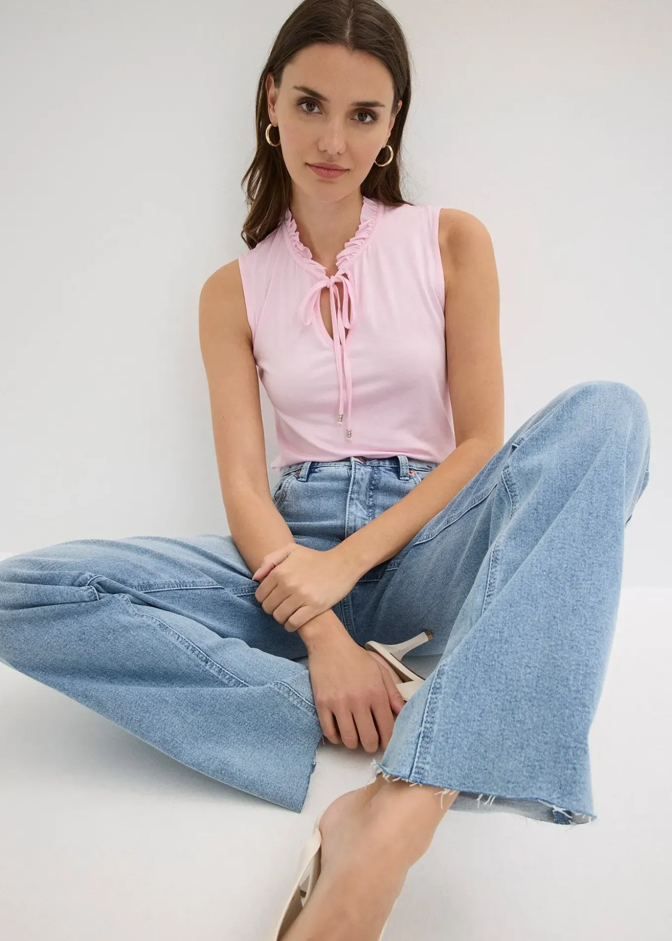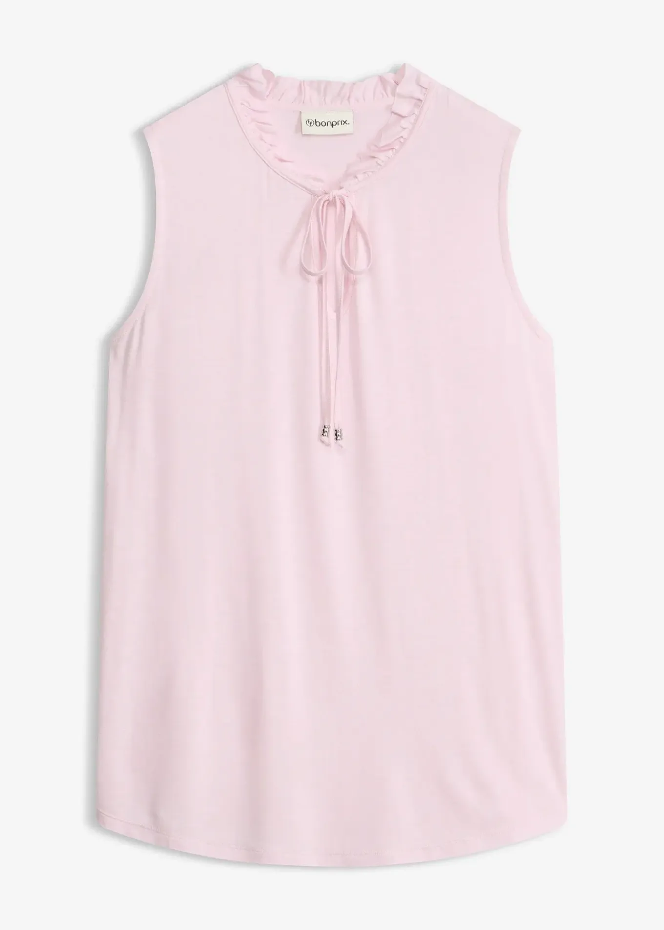 Ruchés au col et laçage au décolleté. Long. env. 68 cm.