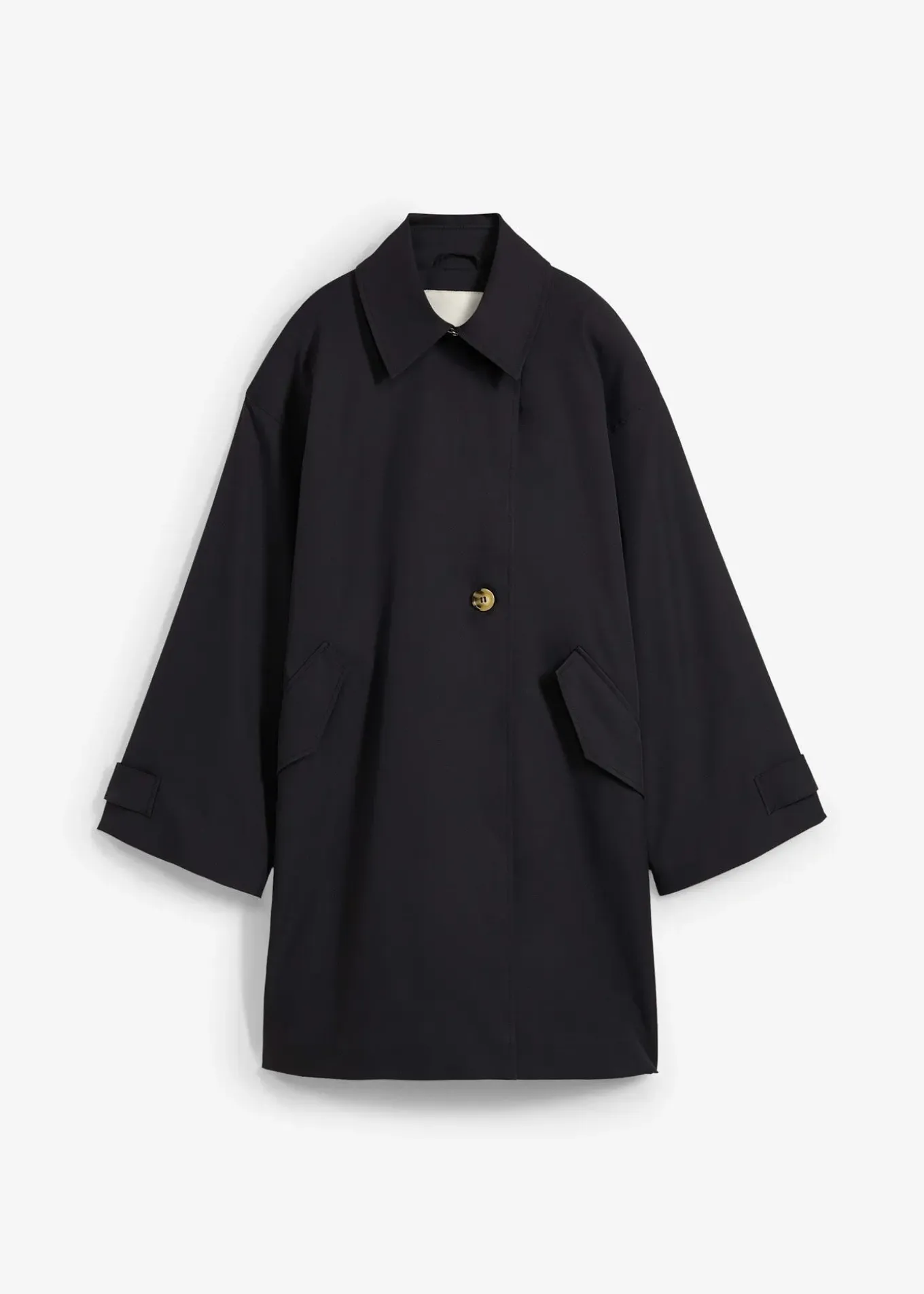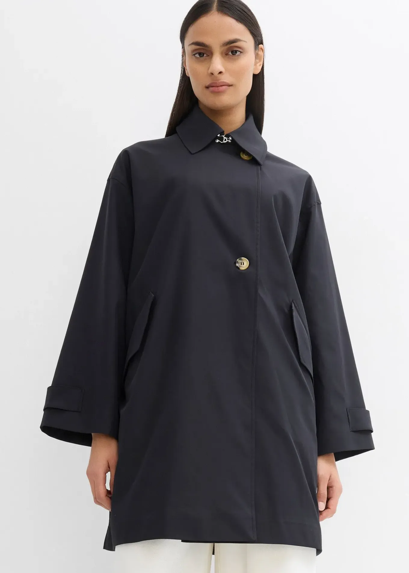 Trench-coat court à boutonnage simple sous patte avec manches raglan et pattes boutonnées aux poignets