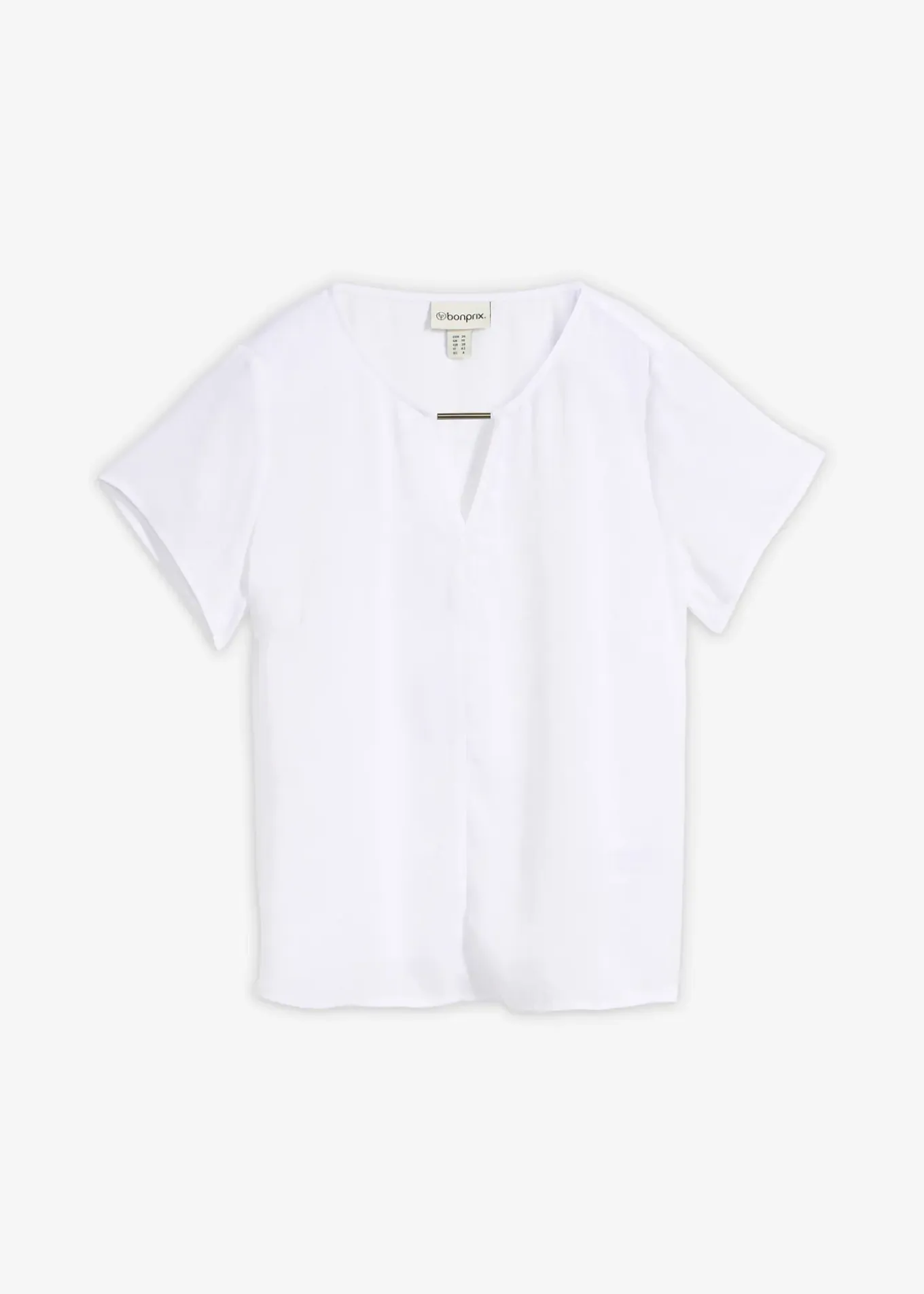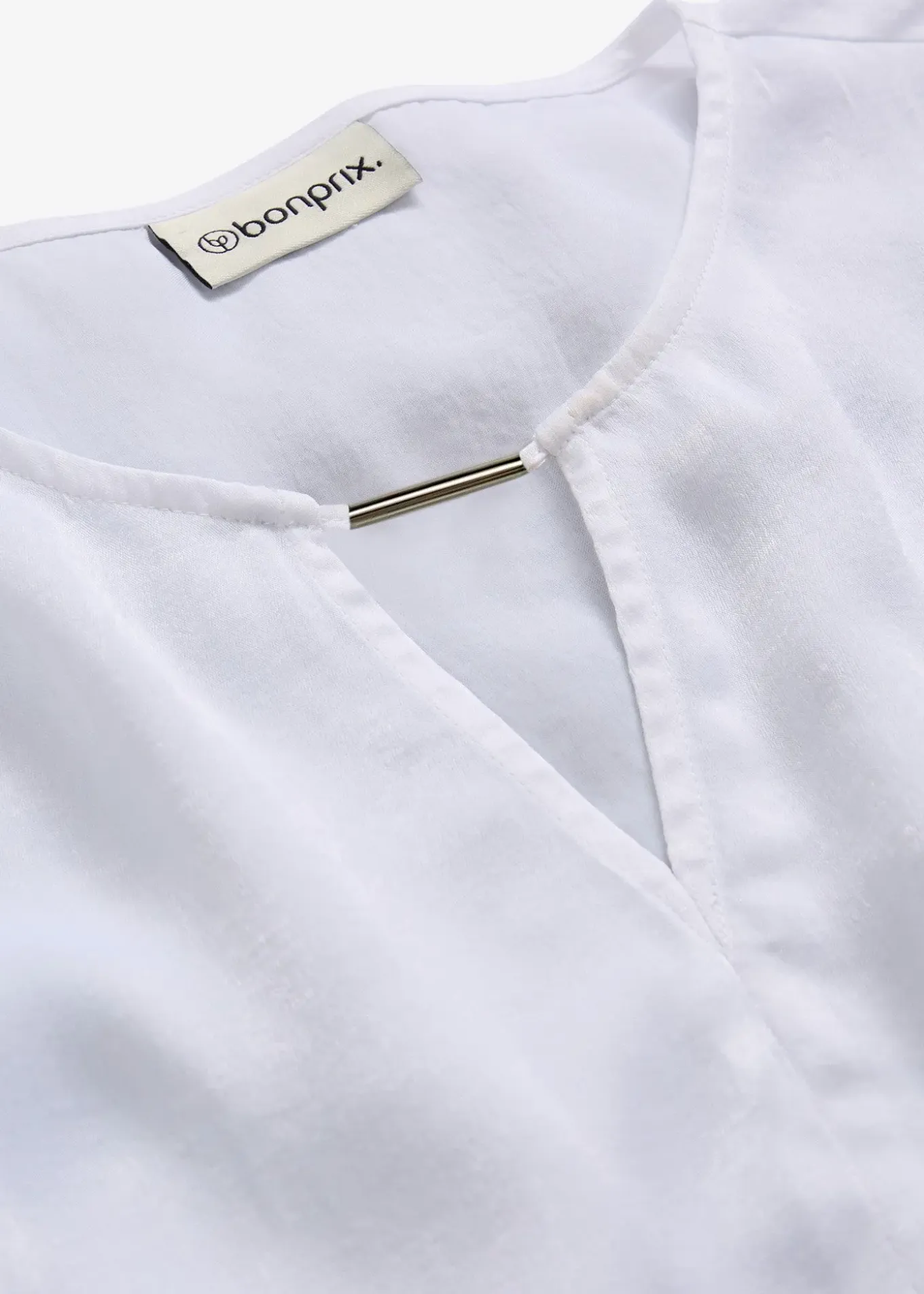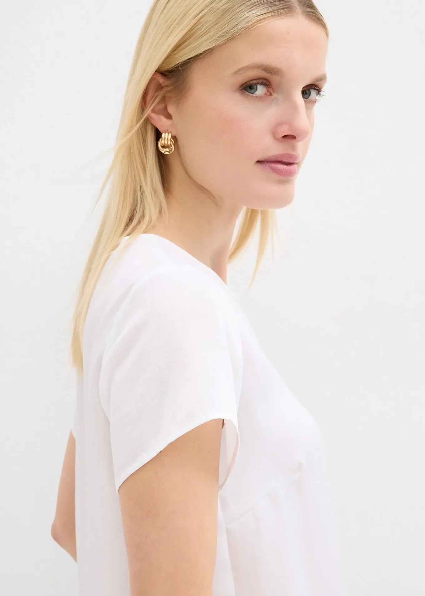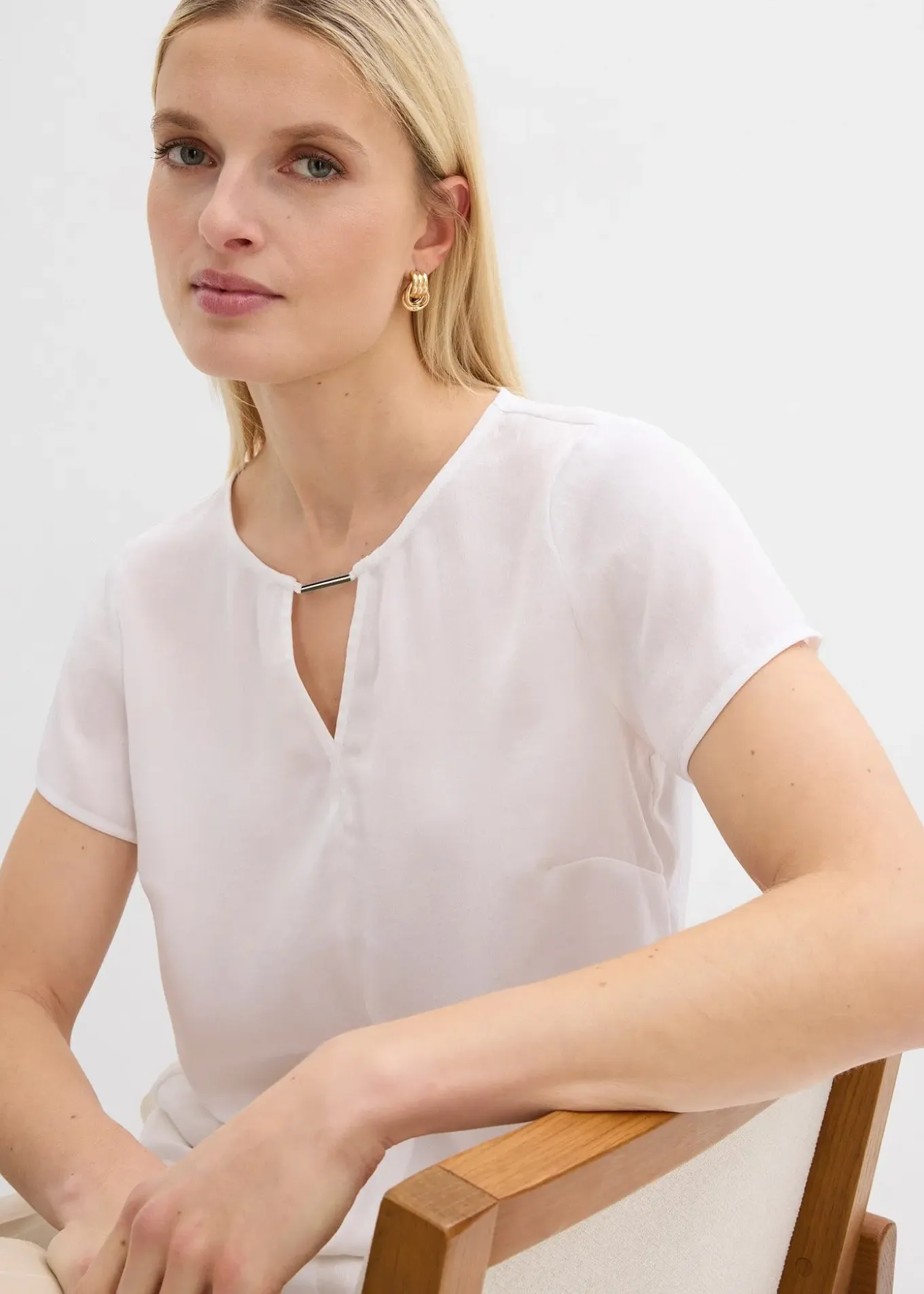 Tunique stylée à manches courtes en satin avec détail décoratif en métal