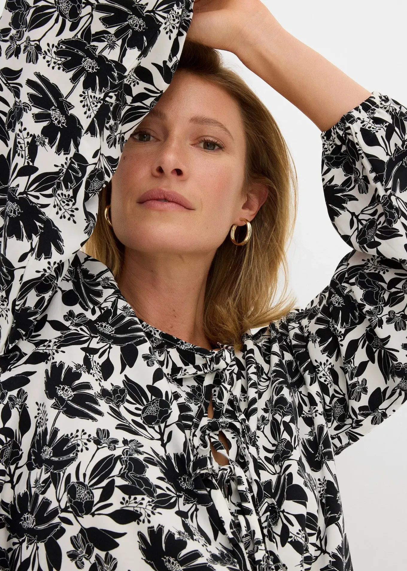 Tunique trapèze à épaules légèrement descendues, col rond et trois liens à nouer.