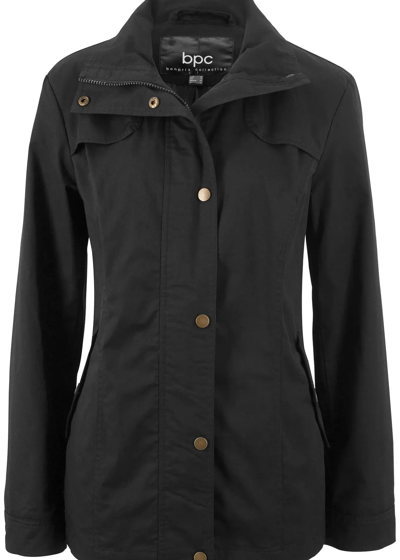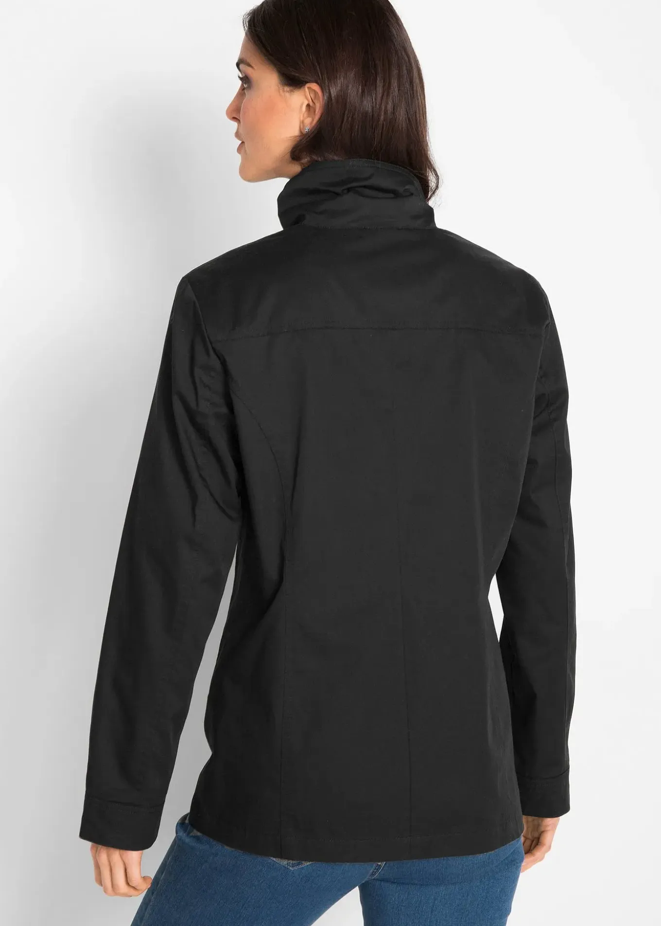 Veste zippée et boutonnée à col montant qui protège du vent et des intempéries. Poches pressionnées sur les côtés.