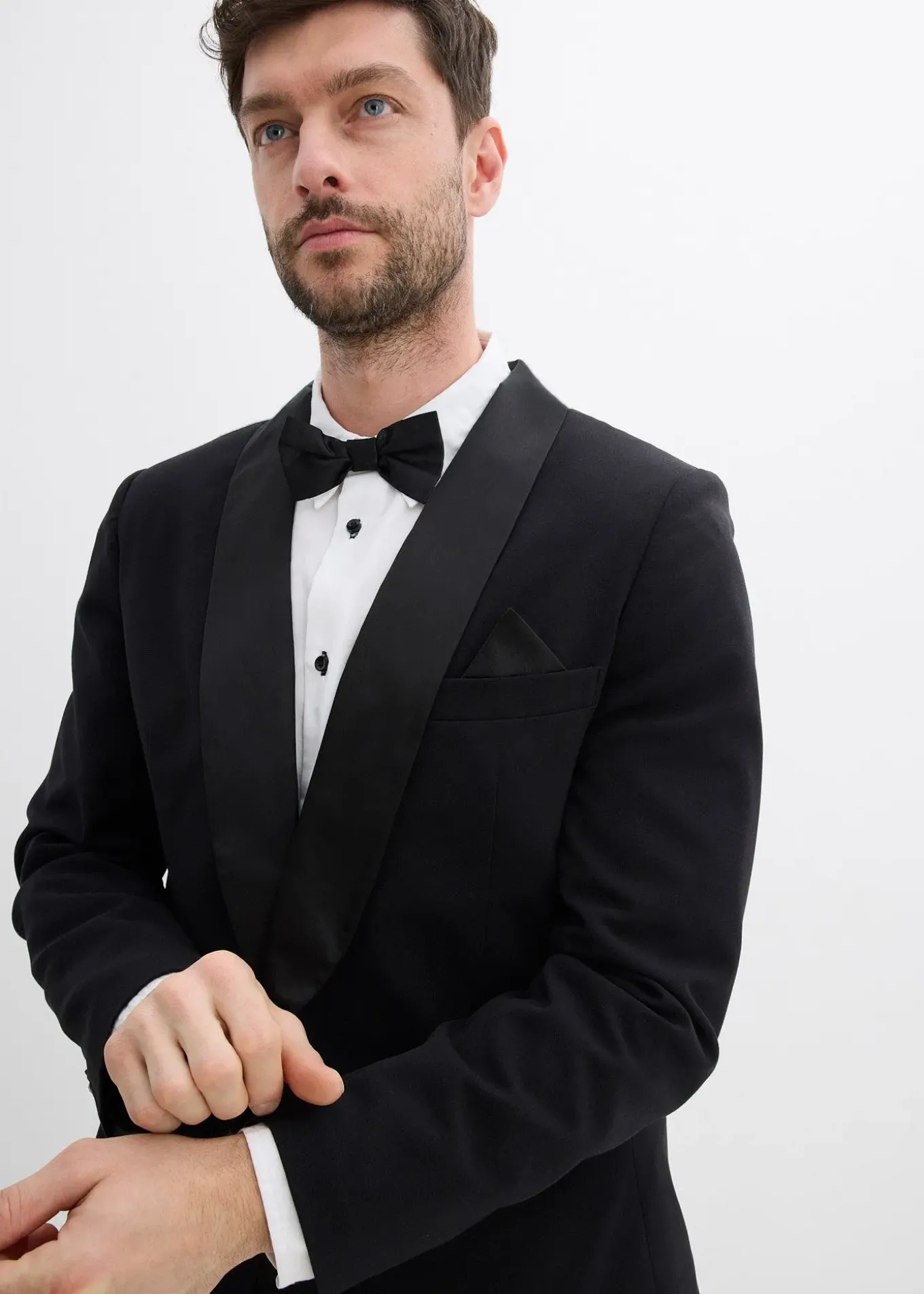 Veste de smoking étroite avec détails en satin/Veste de smoking slim avec col châle en satin et poche poitrine